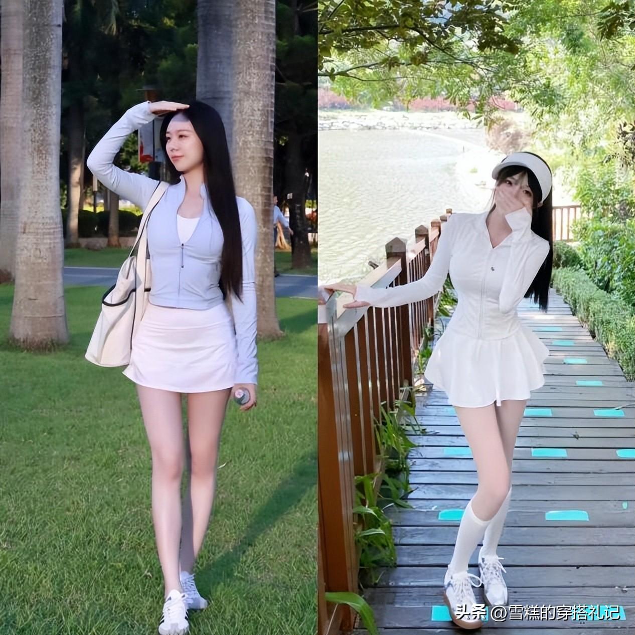 一、杭州滿大街都搭配的{瑜伽服+短裙}