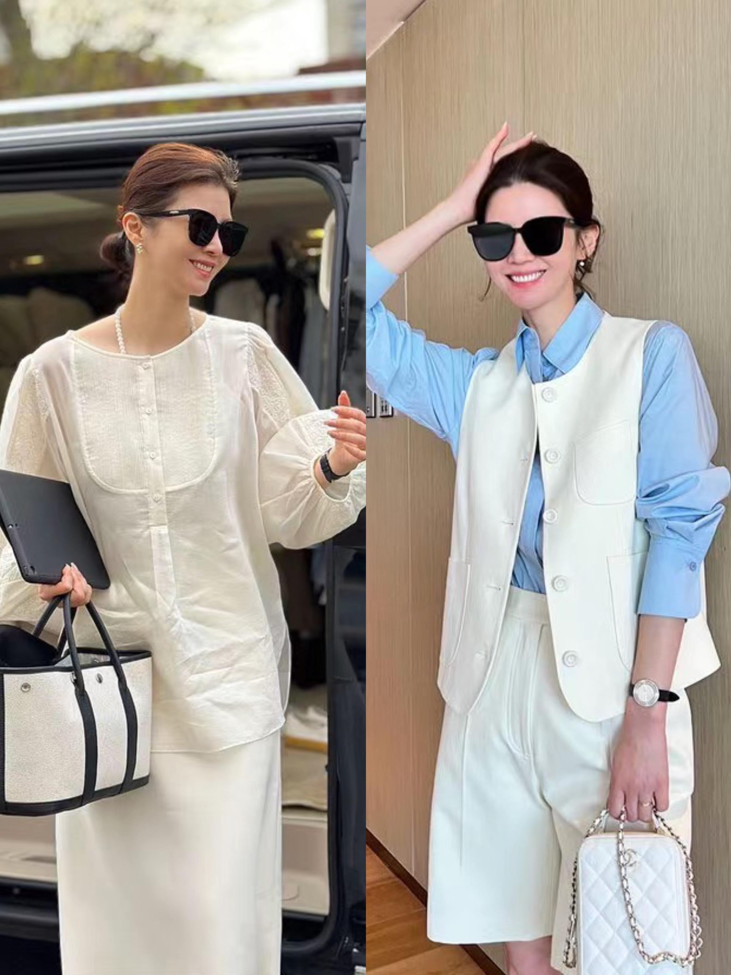 白色國風套裙+珍珠項鍊,是素雅顯貴的。馬甲+短褲的套裝,則是清爽帥氣的。