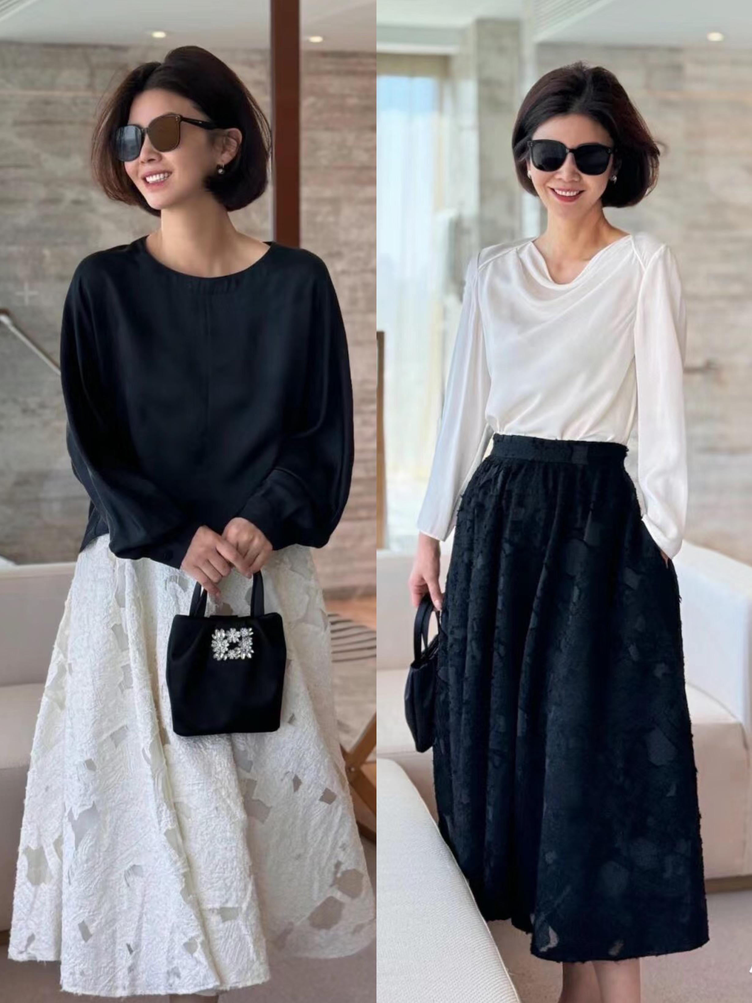 40+女生的優雅,都藏在高級貴氣的傘裙裏。高腰的傘裙、大量感的裙襬,穿起來華麗且生動。