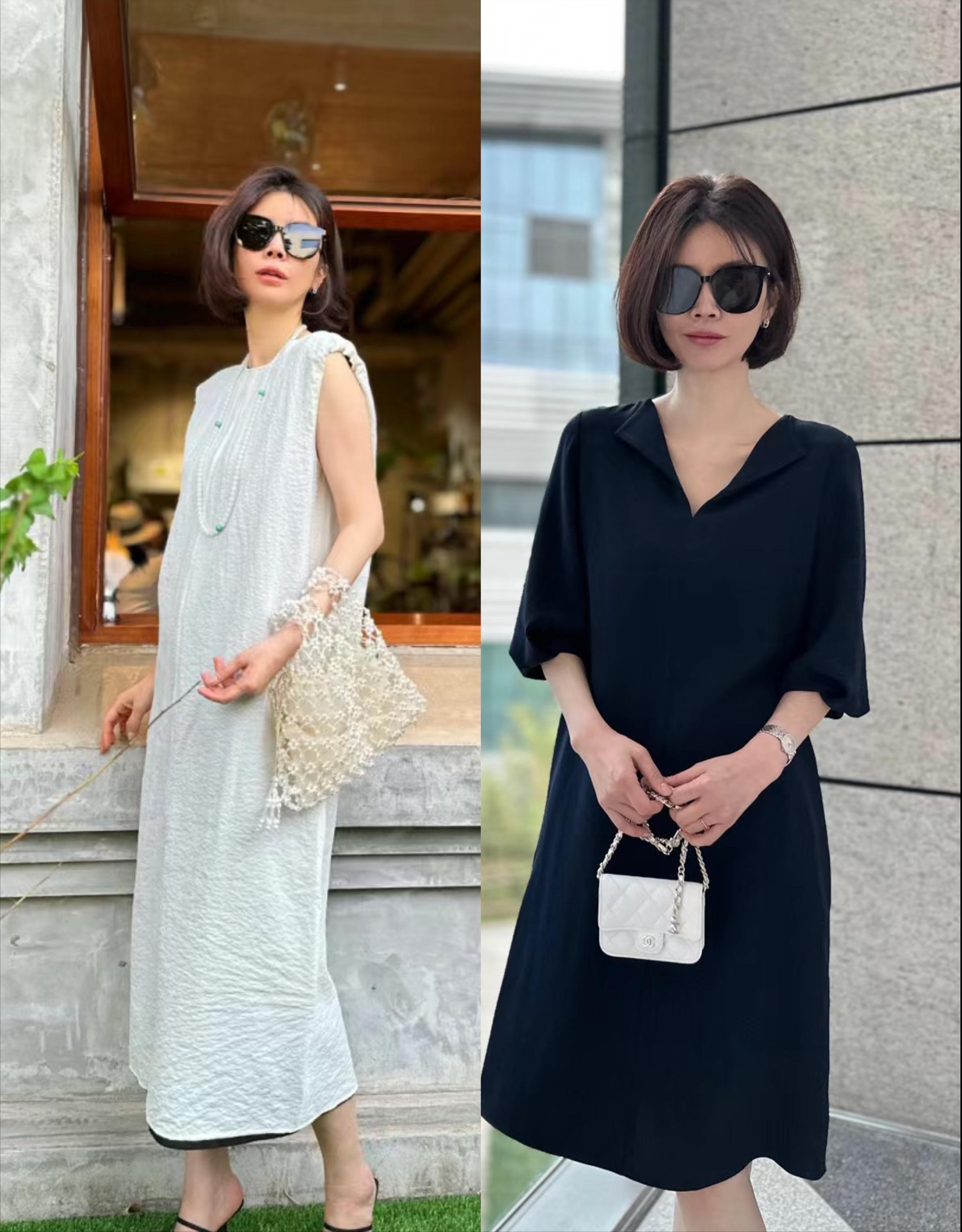 40+的女生,想要凸顯氣質、表現高級美,一定不要總是穿太少女、或者太稚嫩的連衣裙。連衣裙的款式,適當展現風格品味,款式以簡約大氣爲主。