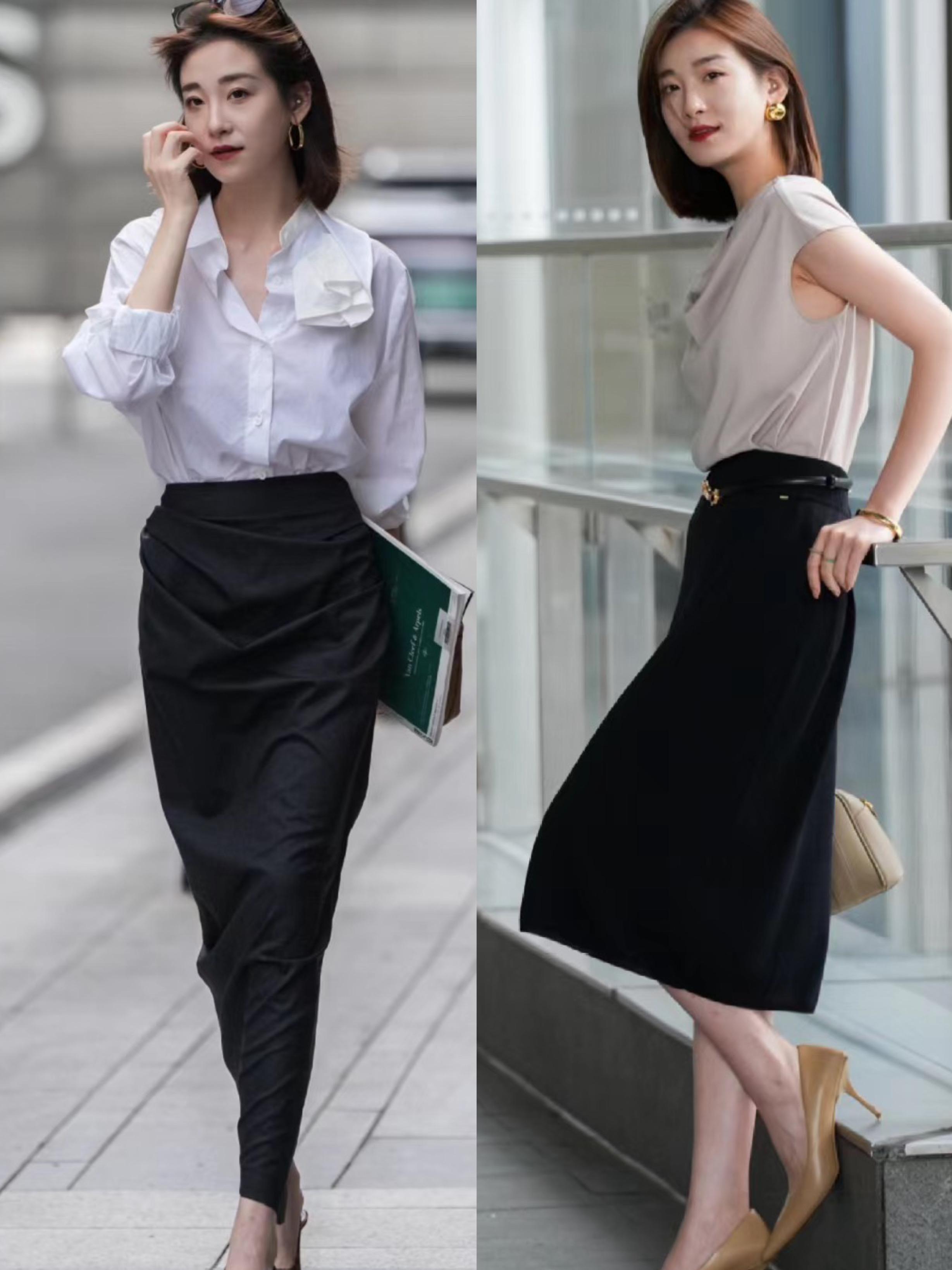 大女人風格的穿搭,讓她們在職場生活中游刃有餘。一件時裝風襯衫,配上高腰的黑色半身裙,時髦別緻、考究又耐看,踩高跟鞋摩登時髦。
