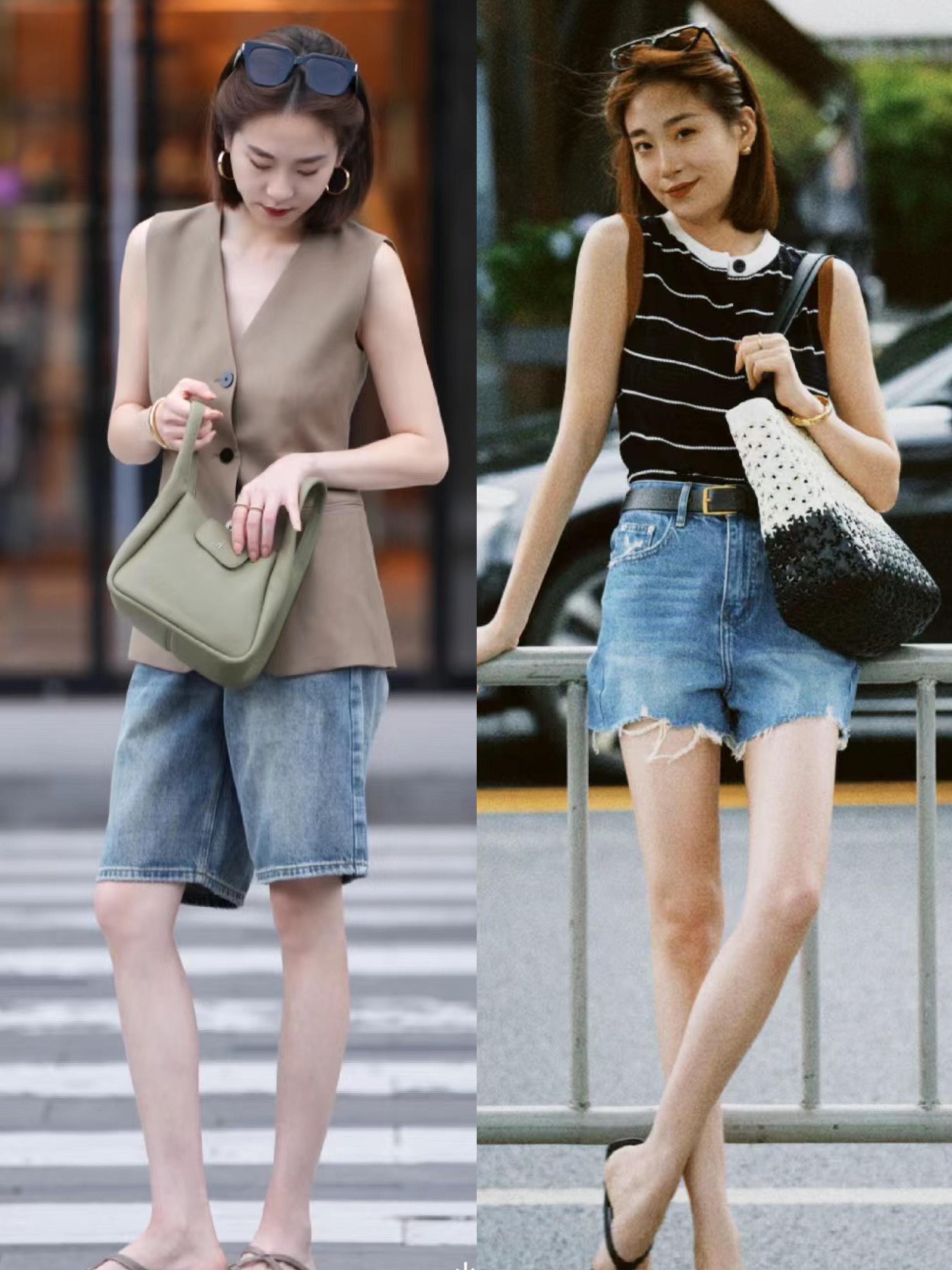 下襬磨邊的牛仔短褲、或者稍微寬鬆的及膝款牛仔短褲,穿上身都很修飾腿型。想要顯得雙腿更纖細一點,就穿酷颯的牛仔短褲,滿是大女人的帥氣。