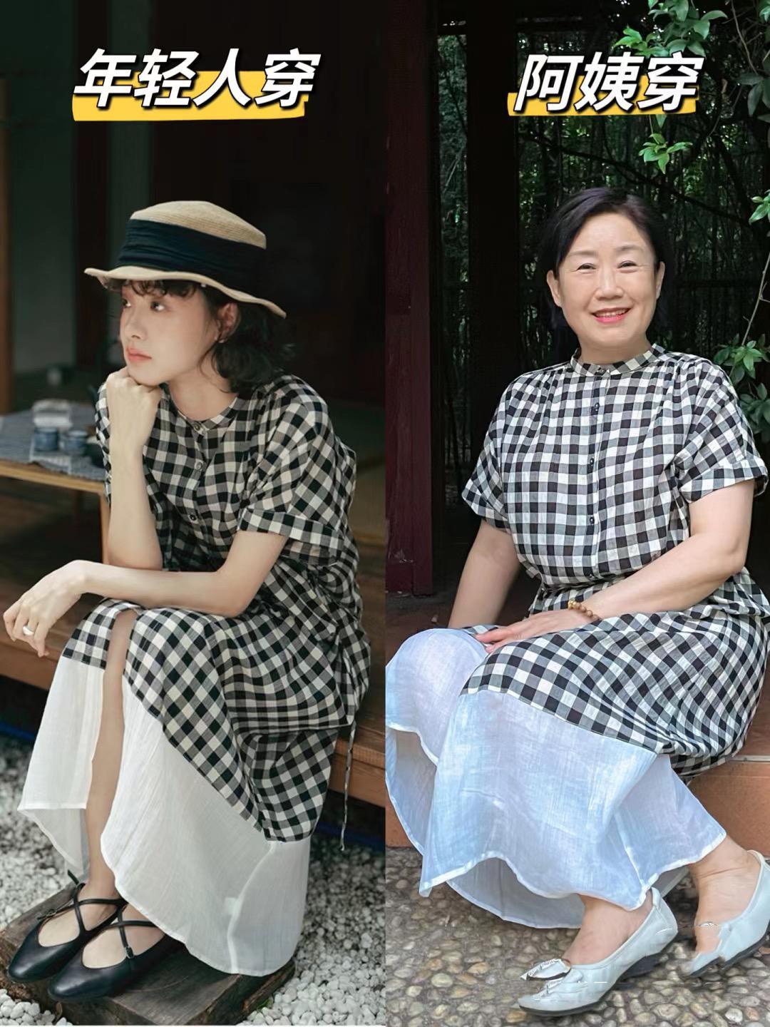 素雅的黑白格子,國風連衣裙的設計,素雅卻不乏味。黑白格子連衣裙,配上白色裙襬的點綴,素雅中帶着輕柔之美,洋氣又減齡。