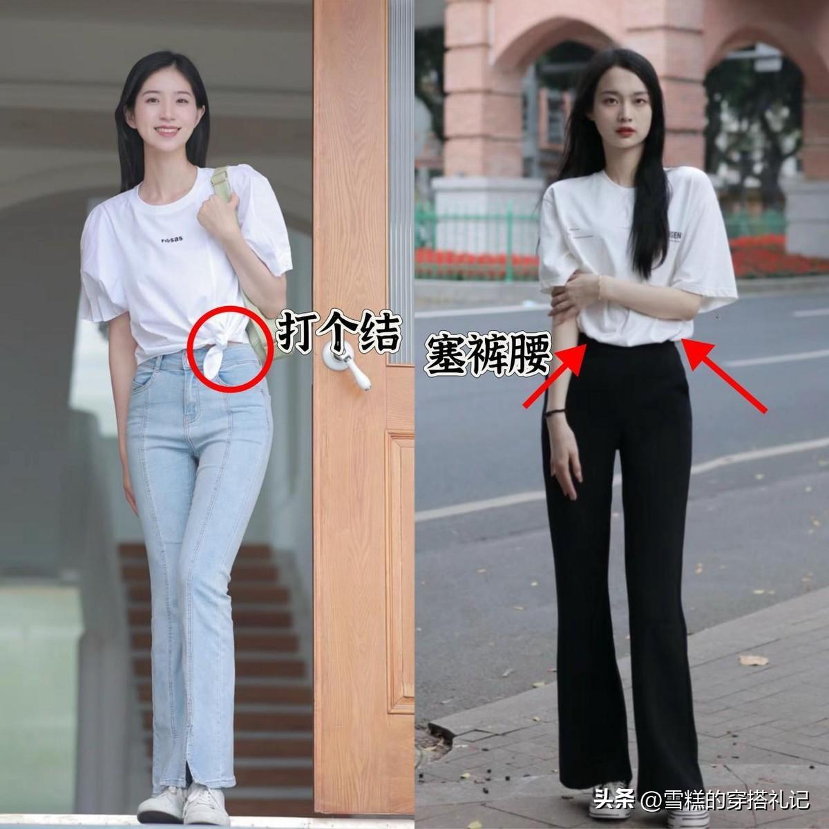 T恤下面不要再配小黑褲了,學學趙露思這樣搭,洋氣好看又顯瘦