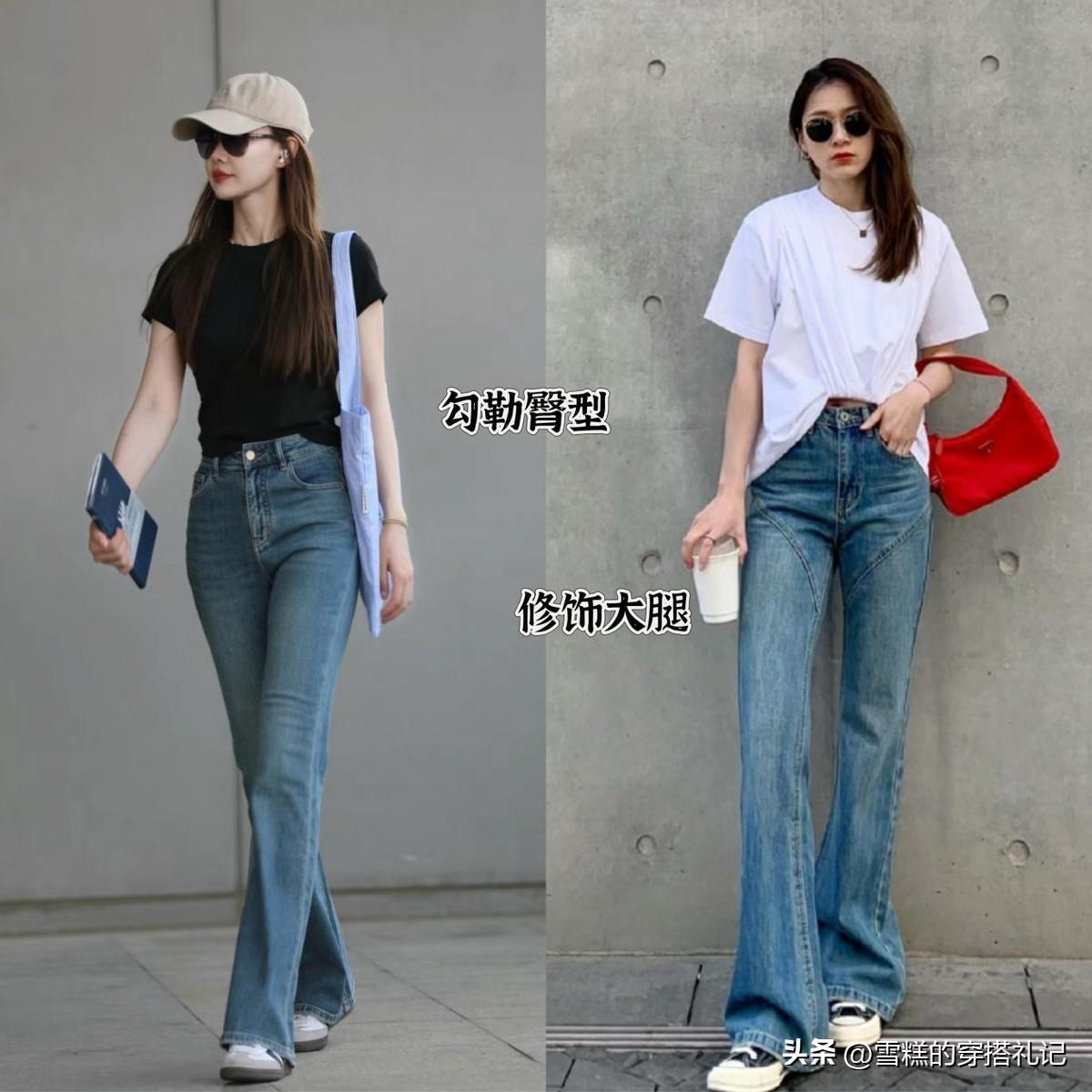 但如果你的臀部下垂明顯,並且有小腹突出的問題,就不要盲目入手微喇褲了。上窄下寬的微喇褲,更適合臀部豐滿挺翹,並且腰臀比例較好的女生,如果再加上大腿細的話,就更完美了。