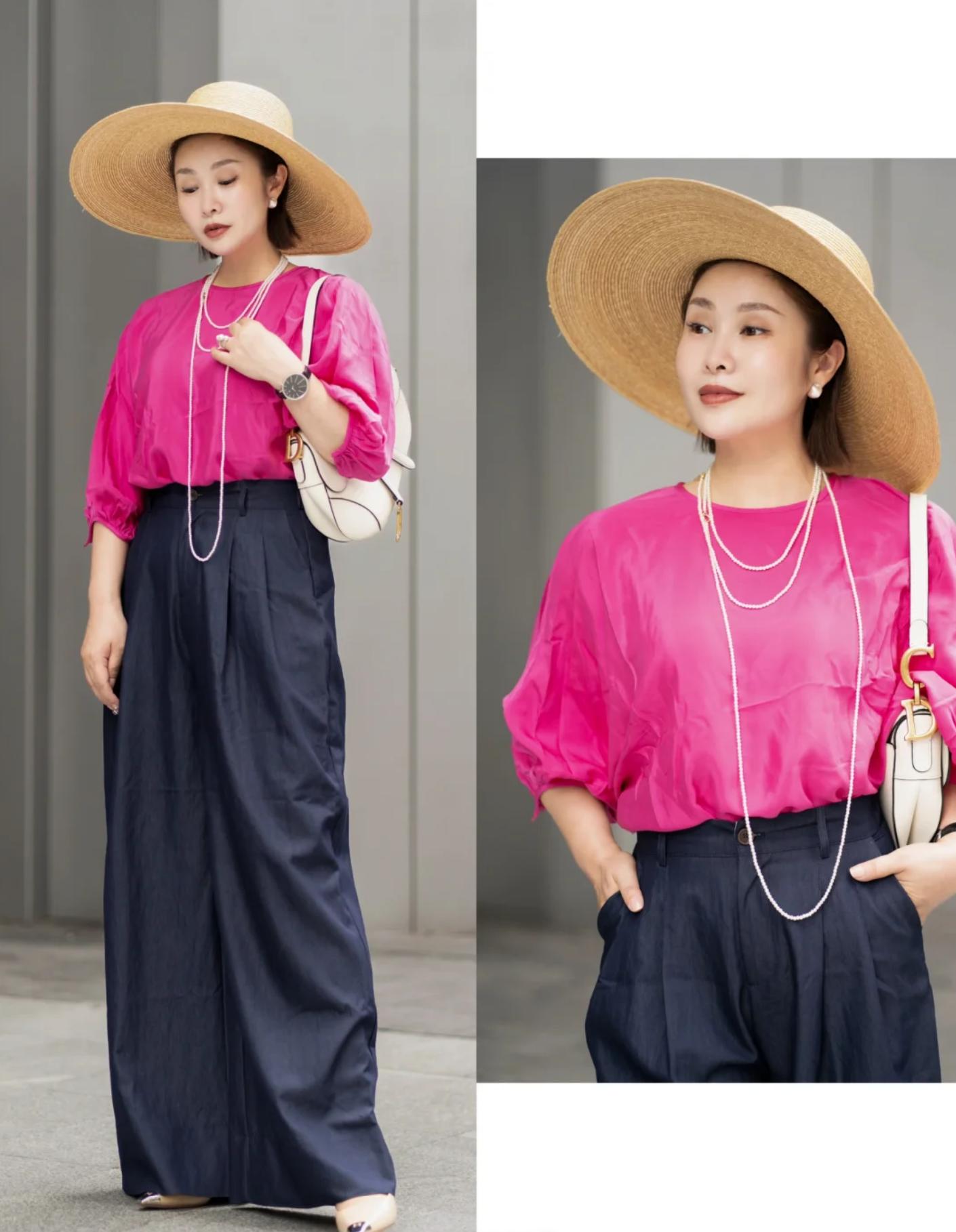一件明亮的玫紅色上衣或熱情的紅色上衣,搭配一條簡潔的黑色褲子,既能突出夏日的活力,又不會過於張揚。珍珠項鍊的點綴,這樣的搭配,讓你在人羣中脫穎而出,成爲焦點。