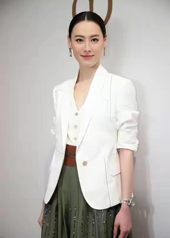 而像她這樣苗條卻又失凹凸感的好身材,自然各種穿衣風格都能駕馭。只是,她的穿搭,追求簡約,但簡約中又不簡單,好比這身白色西服造型。