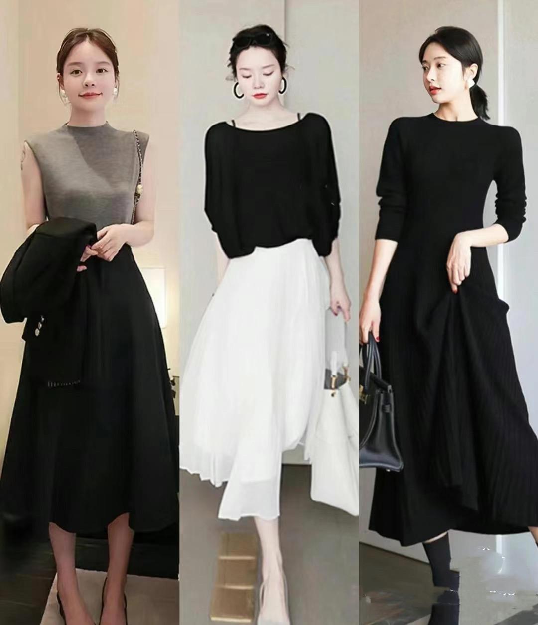 赫本風半身裙,可以選擇經典顯貴的黑色,也可以搭配清新醒目的白色,黑白色的赫本風半身裙,都很容易搭配。