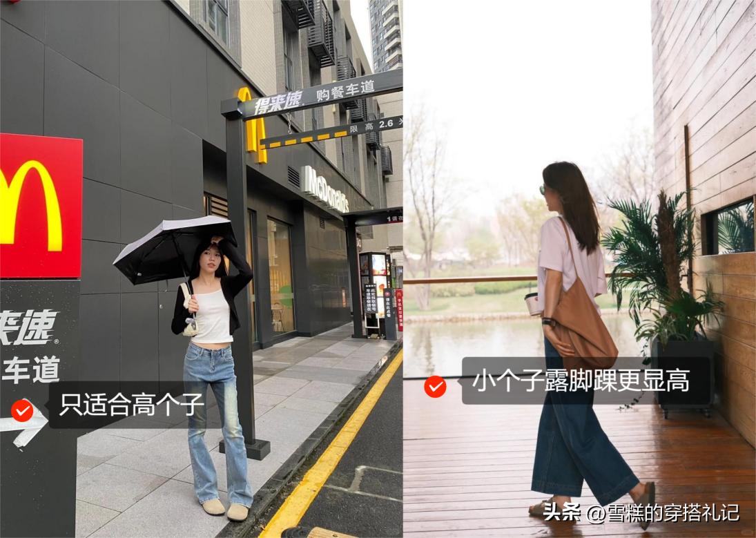 褲子的長度其實可比比你的日常穿搭需求更長一點,褲腿偏柔軟的面料堆積在你的腳踝,展示出了褲子長度的同時也維護了你的身材比例,個子不超過160的女生更適合這樣去拉扯腿長,穿勃肯涼鞋更顯高。