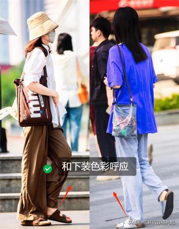 褲子和勃肯涼鞋的色彩匹配,其實整體來說追求的是一種色調上的協調,並不需要用同一種顏色,而是冷色調和暖色調的區分,相對應的色調銜接,纔可以讓你的造型有更多的和諧感,氣質上的減齡性更強。