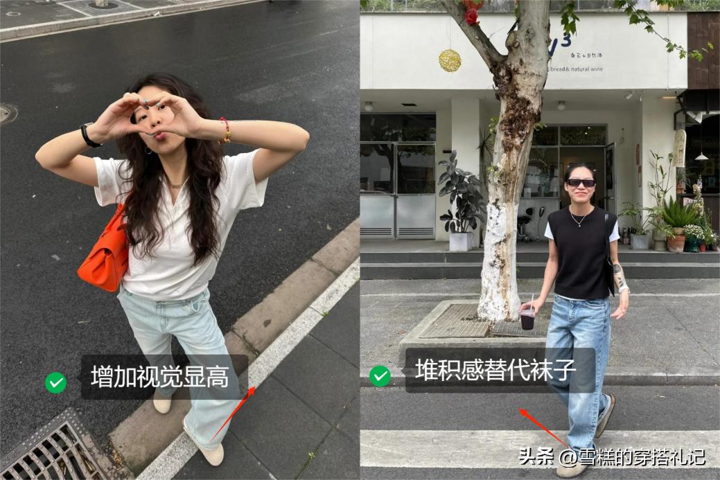 ⒉學會讓褲子堆積腳面,拉扯腿型長度