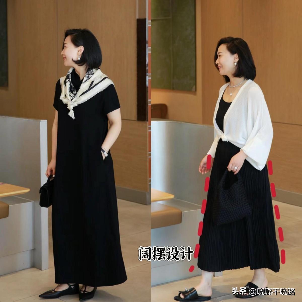 微胖身材的媽媽輩,身材困擾多數集中在腰腹部,腰粗臀肥以及胯寬的問題,都會影響到自身的思緒,拒絕過於緊繃的裙子,選擇面料有垂感、版型寬闊的長裙,飄逸又靈動。