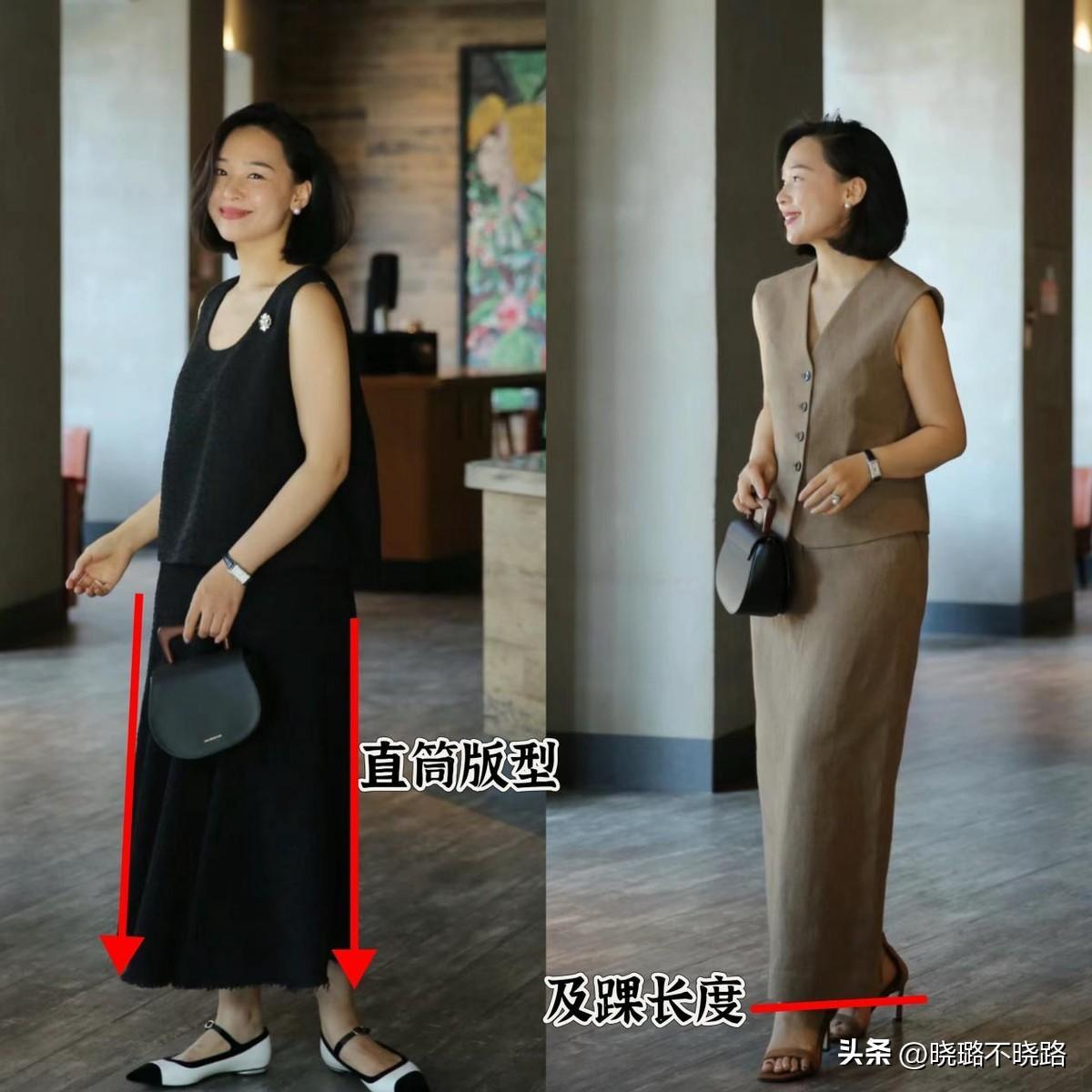 整體搭配應當“鬆緊結合”,比如,衣襬寬鬆的無袖上衣,可以搭配裙襬窄一點的直筒長裙;亦或者,收腰款式的無袖馬甲,配過膝傘裙,輕鬆掐出腰線。
