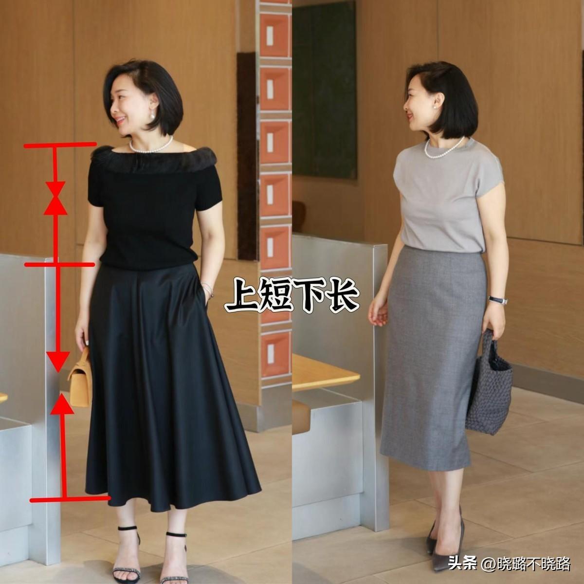 想要分割身材比例,就要明確出腰部線條,像這種短上衣和高腰半身長裙的搭配,就很值得中年女人去嘗試,就像是微胖媽媽,穿出來的效果也是很優雅大氣的。