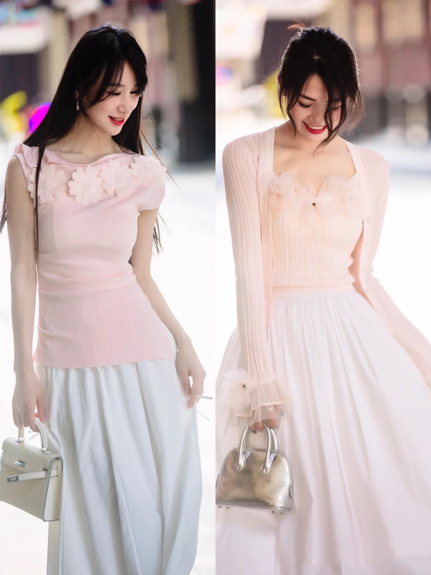 裸粉色的輕柔、白色系的純美,配在一起也是讓人心動的柔情。