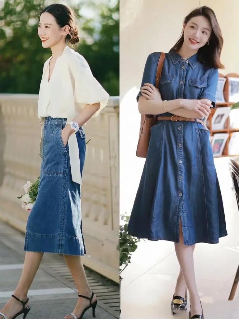 尤其是版型挺闊、帶有筋骨感的白襯衫,穿起來也會更輕盈遮肉一點。用白襯衫配牛仔半身裙,視覺上更輕盈、洋氣且顯高。