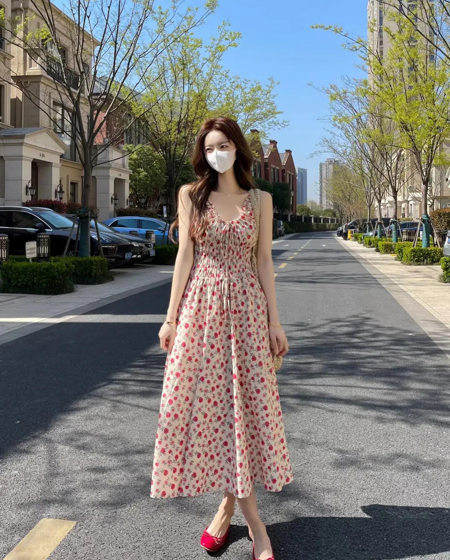 這個夏天,穿裙子還是建議花一點更好看吧,喜歡這種小碎花的吊帶裙,很適合悶熱的天氣穿起來,收腰的設計,可以將完美的身材比例呈現出來。