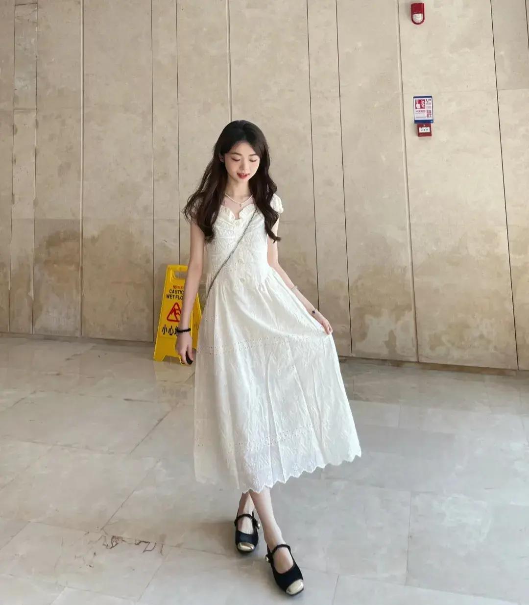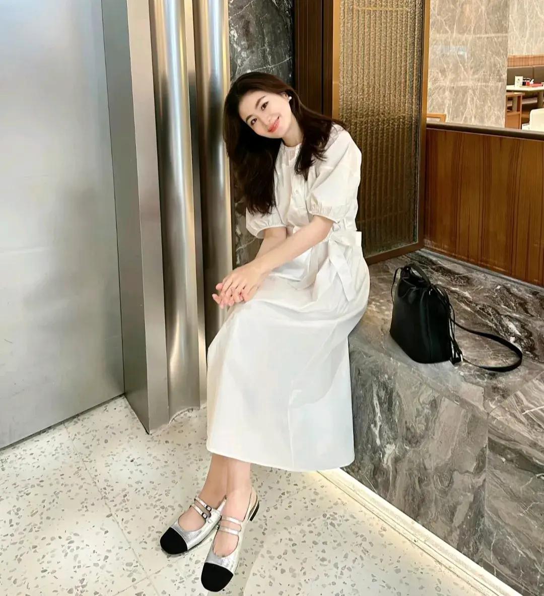 155小個子女生也可以駕馭的一款白裙子,有些偏法式風,自帶氣質和浪漫。選擇一雙黑色瑪麗珍鞋,黑白配簡直太好看了,一整個被氣質住了。
