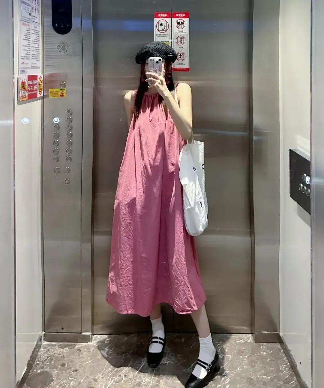 夏天當然要穿裙子啦,不管是在約會,還是去逛街都可以穿,喜歡它寬鬆的版型,對身材一點約束感都沒有,可藏肉顯瘦。玫粉色,很襯膚色和顯白,直筒的裙身,對身材包容性可是極佳的,選擇一雙黑色瑪麗珍鞋,這樣看起來也太溫柔氣質了。