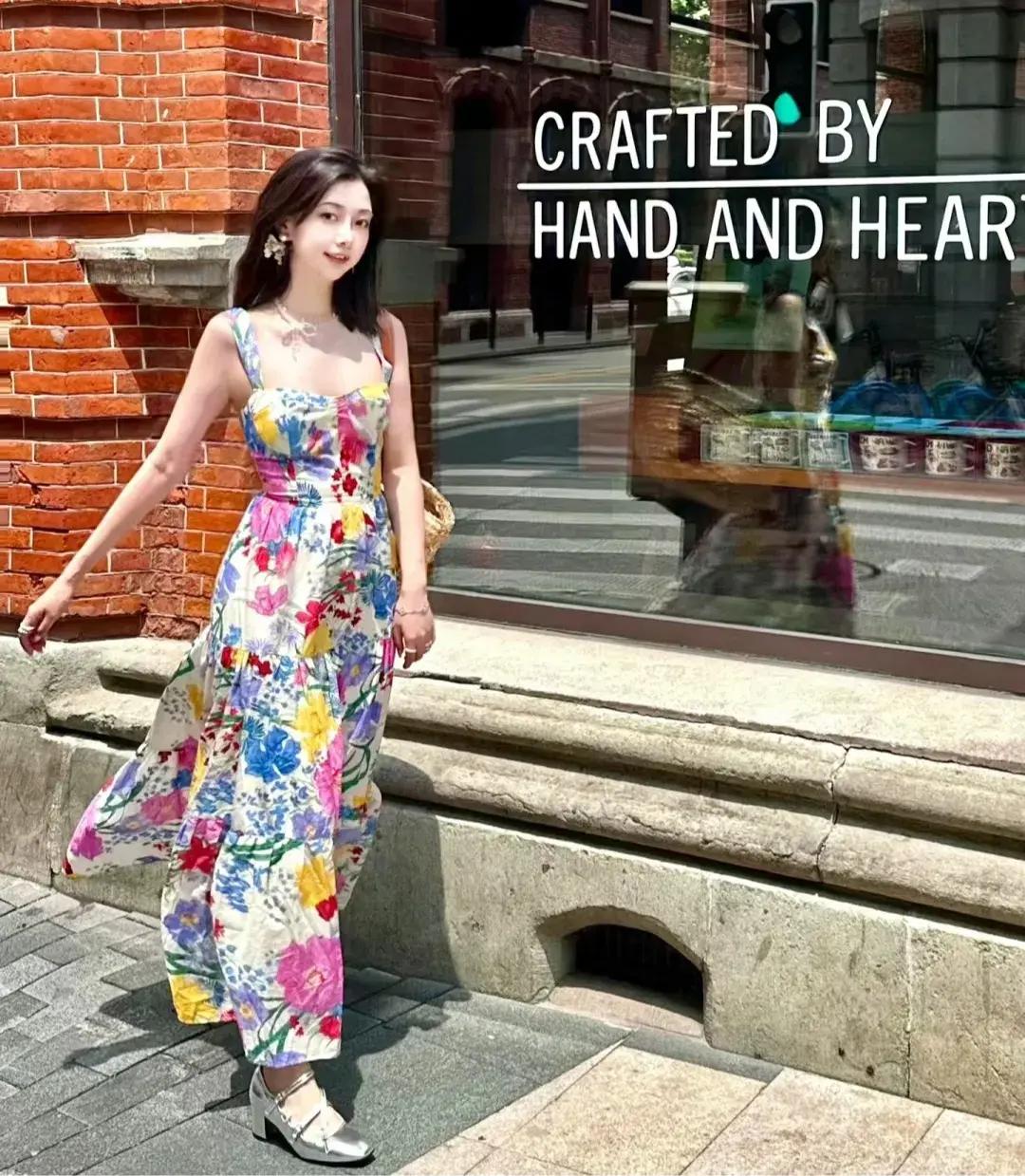 這可是我最喜歡的花裙子了,植物系的花裙子,真的太顯浪漫和氣質了。性感又不失清涼的吊帶款式,穿起來也太美了!高腰的設計,提高腰線比例又能拉長腿部線條,搭配一雙銀色瑪麗珍單鞋,整個人看起來又乖又溫柔。