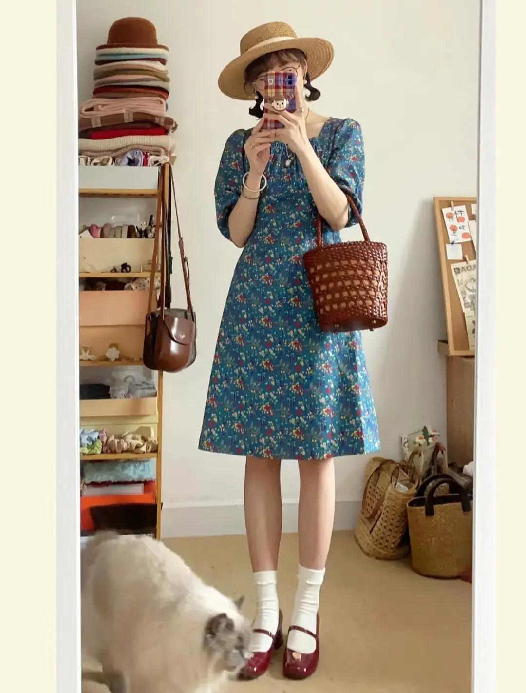 自帶復古氣息的一條花裙子,真的沒法拒絕,長度上是剛好過膝蓋的,加上高腰的設計,在視覺上能起到拉長腿部線條的既視感,小個子也能打造出高挑感。