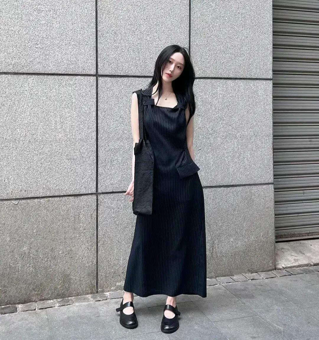 小黑裙真的是永遠都不會過時啊,況且這個顏色很百搭,也能讓你在視覺上呈現出瘦身的效果。無袖的款式,穿起來也太清涼了,還帶着小性感,直筒的裙身,也太藏肉了,腳下踩着一雙黑色瑪麗珍鞋,與裙子形成一致,和諧又高級!