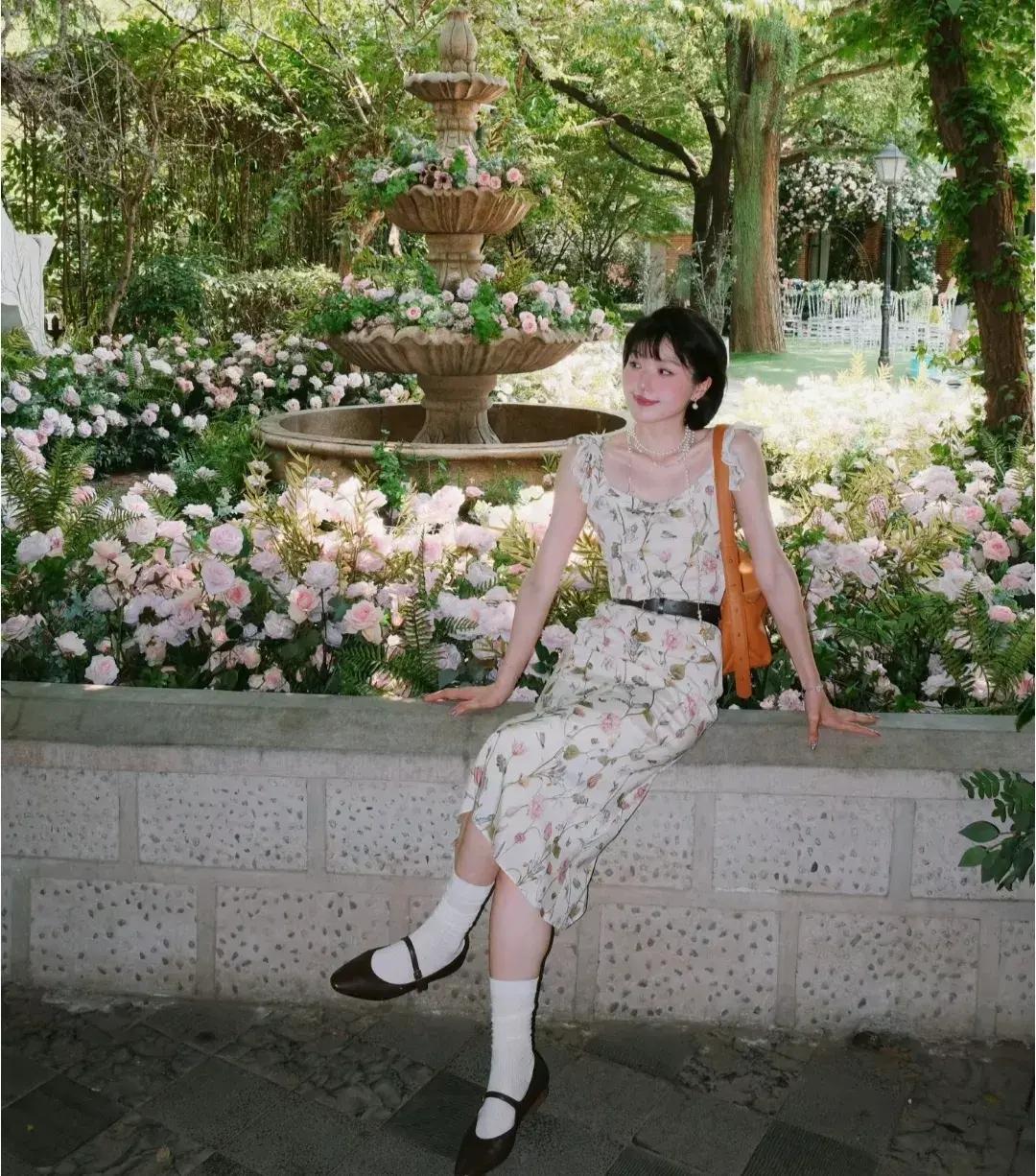最愛的就是春夏季節了,因爲可以肆意穿上各種各樣美美的裙子。版型很寬鬆的花裙子,可以讓你穿得很舒適自在,對身材也沒有一點約束感,藏肉且顯瘦。腳下踩着一雙瑪麗珍單鞋,也太溫柔氣質了。