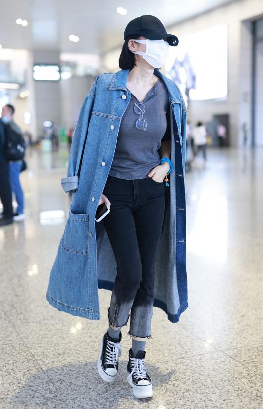 然而,許晴卻解鎖了一種新穿法,那就是披在肩部,展現長款牛仔外套霸氣外漏的一面。