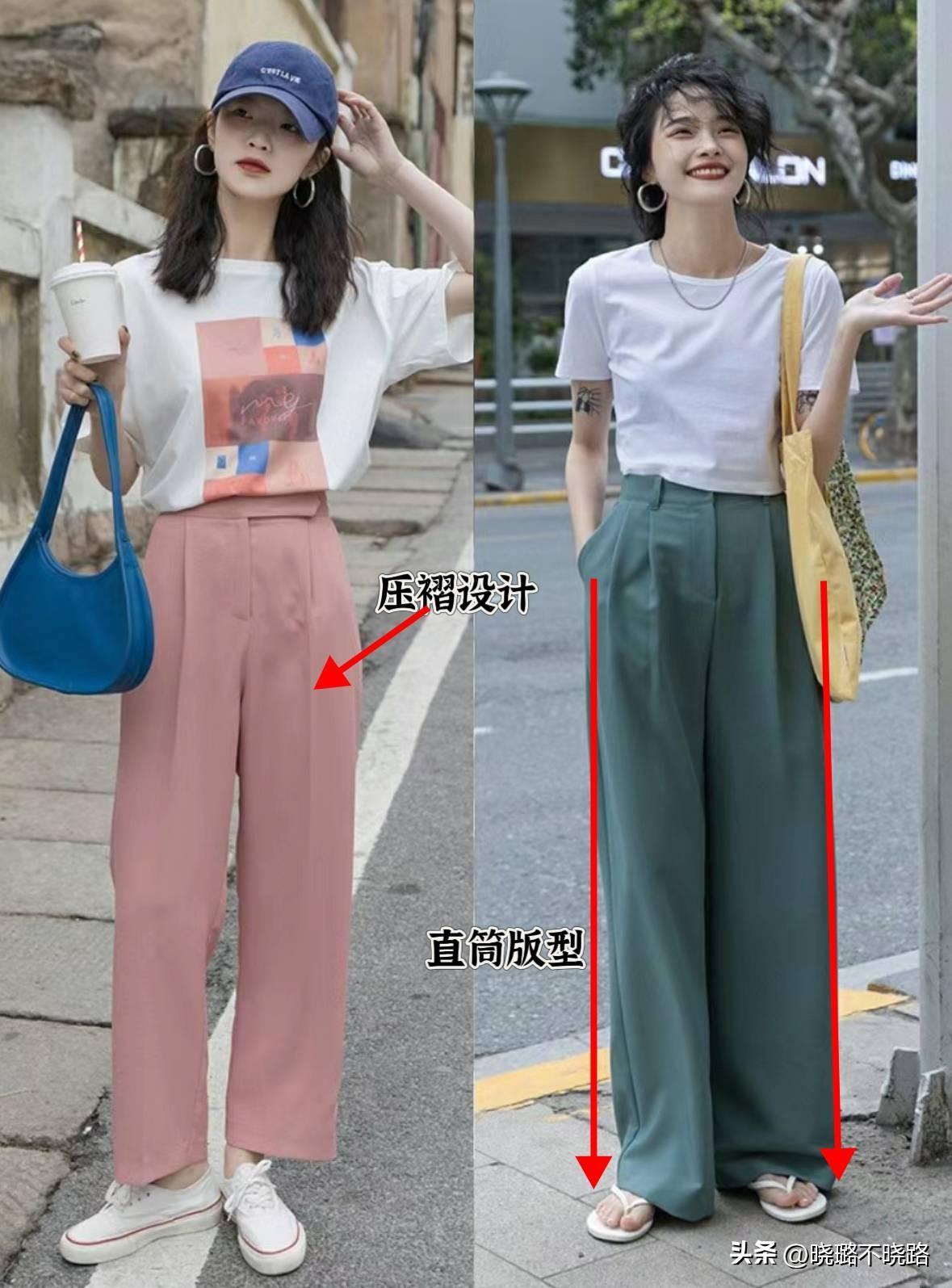 2.胯寬臀肥、腿型不直→壓褶西裝直筒褲