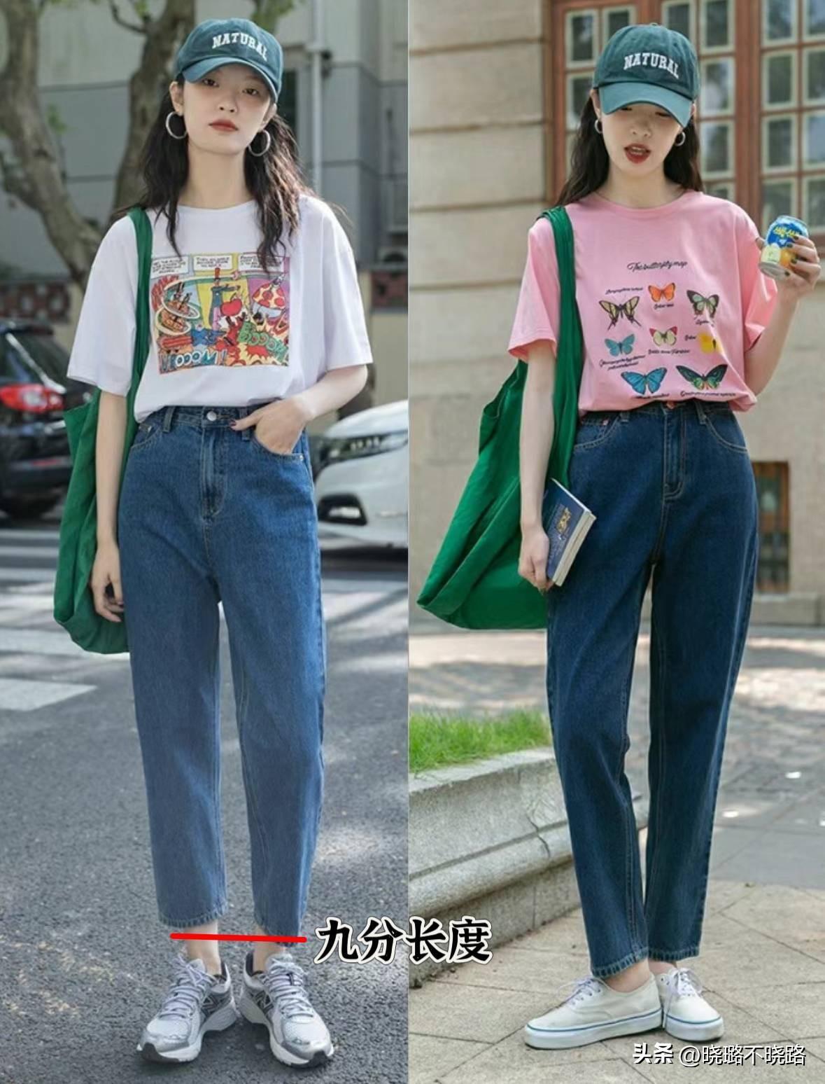 小個子穿T恤,一定要選對合適的下裝,不要穿長度太拖沓、款式有堆積感的褲子,換成露腳踝的九分牛仔煙管褲,才能夠穿出幹練利落顯腿長的效果。