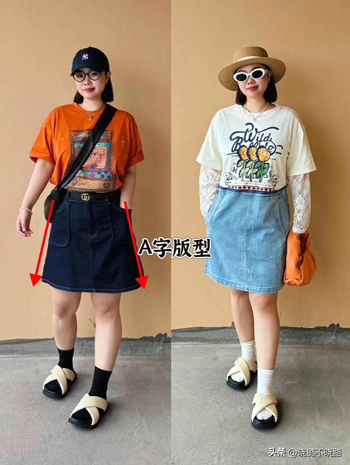就算你是微胖身材,也無需感到焦慮,選擇一件色彩鮮豔或者圖案有趣的T恤,搭配上A字版型的牛仔短裙,便可以穿出活力滿滿的效果。
