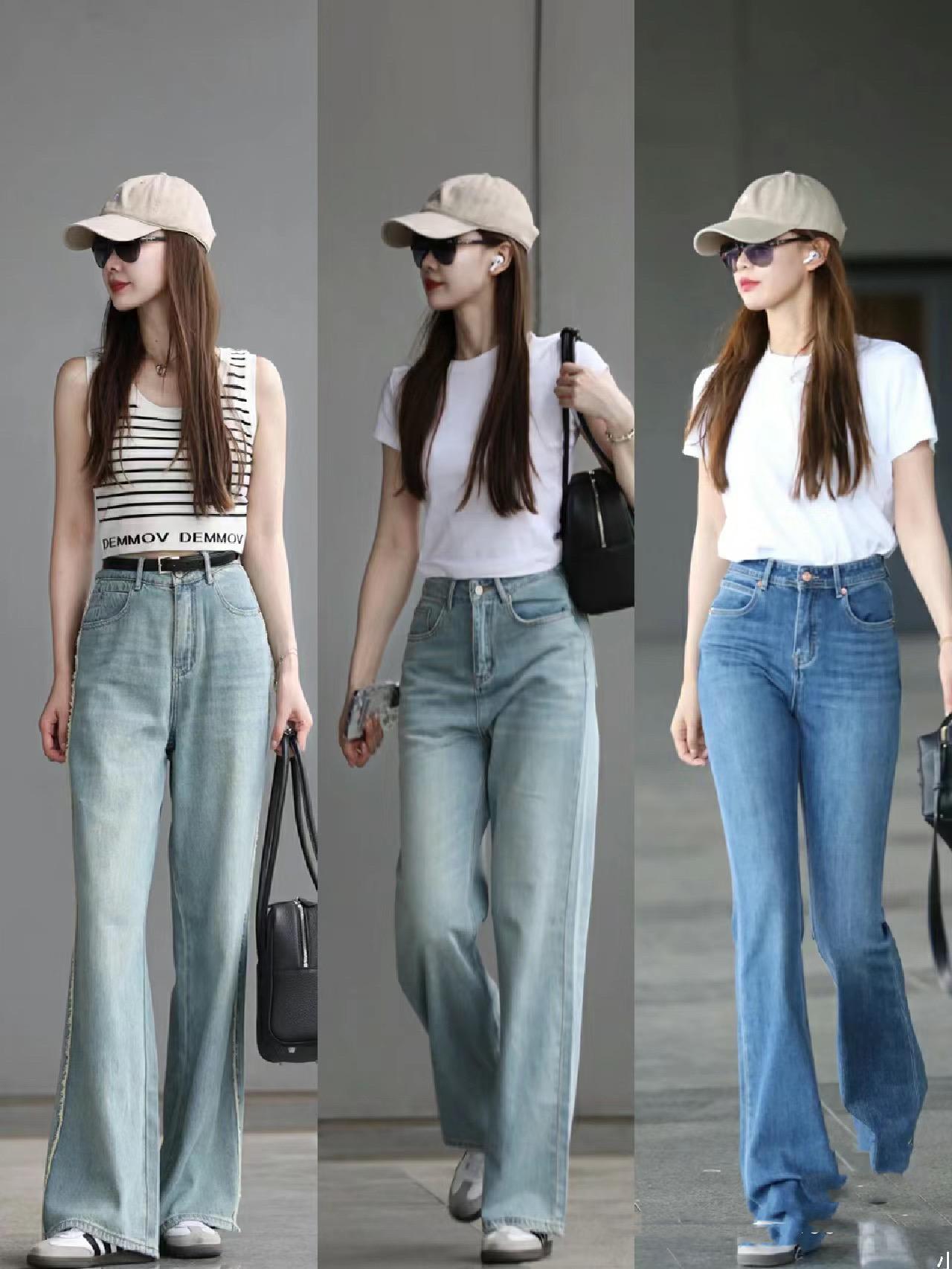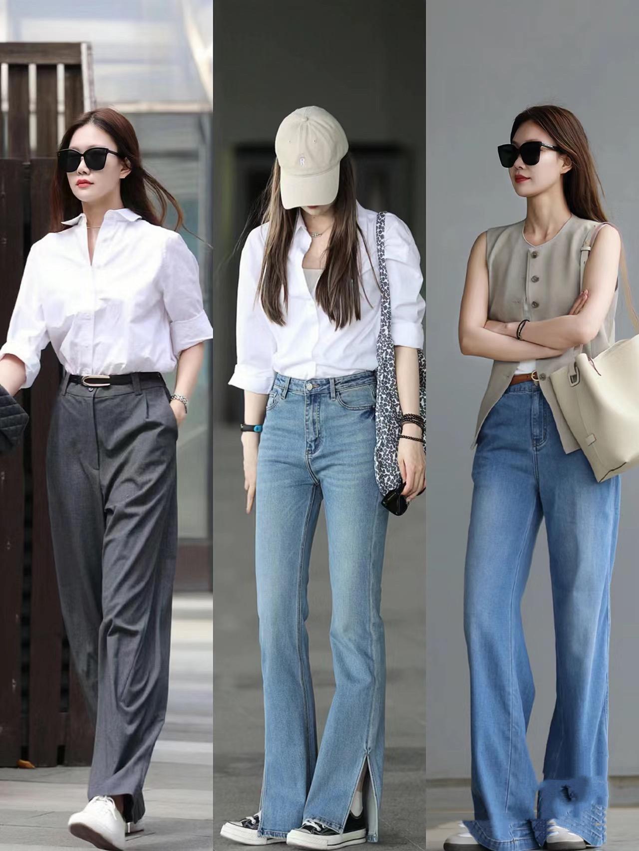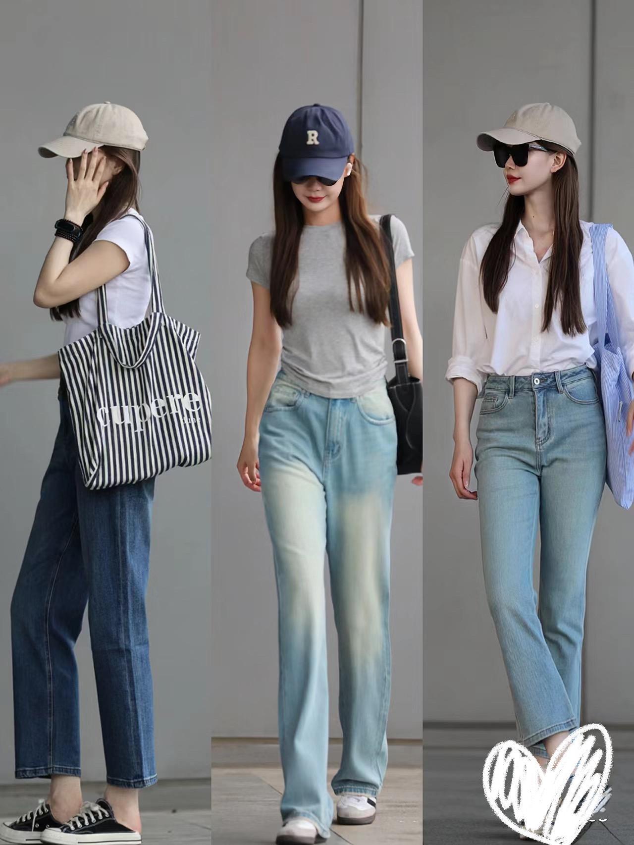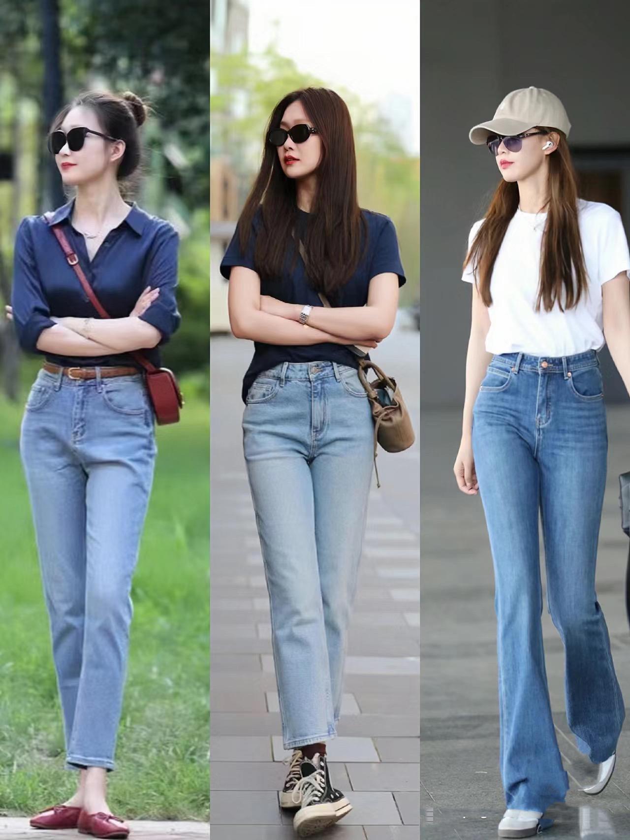 腿型比較纖細勻稱,可以選擇適當貼身的高腰牛仔褲。腿型有一點不完美,可以嘗試搭配直筒的高腰牛仔褲,腰粗、胯寬的話,就穿錐形的牛仔褲吧。