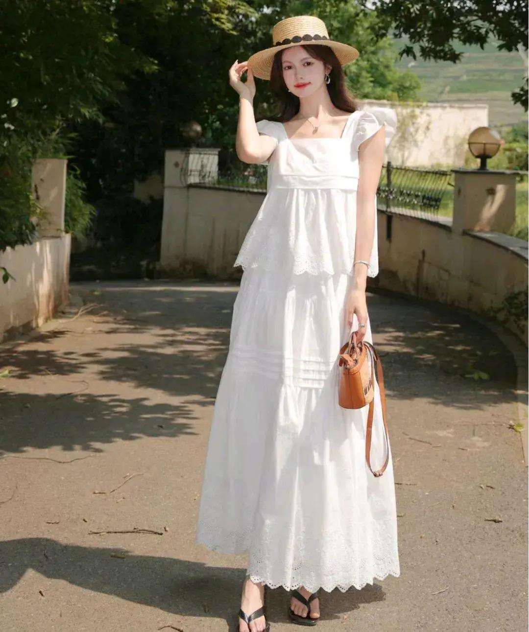 白色的裙子就是巨好看好穿的,記得在選擇裙子的時候,長度選長一些,這樣不僅可以遮掩住身上的缺點,還顯瘦。
