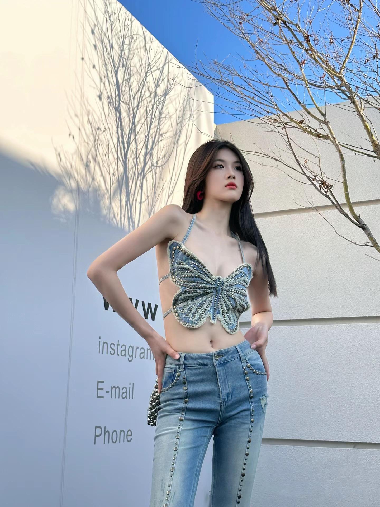 不得不說千禧穿搭擁有不可震撼的魅力,20年後的當下,千禧風依然是一種潮流。個性的蝴蝶剪裁肚兜,配上鉚釘裝飾露胯褲,輕鬆拿捏y2k千禧風。