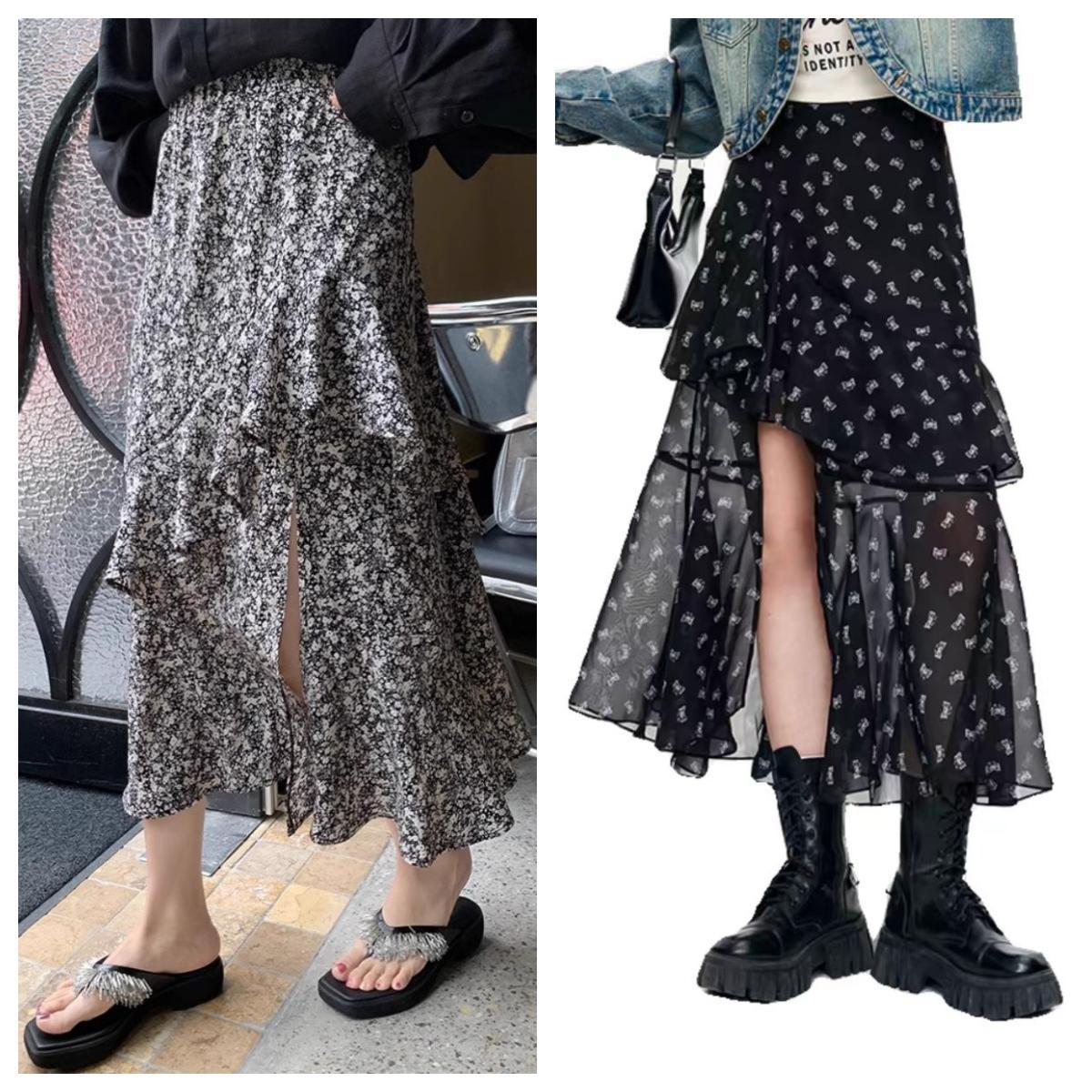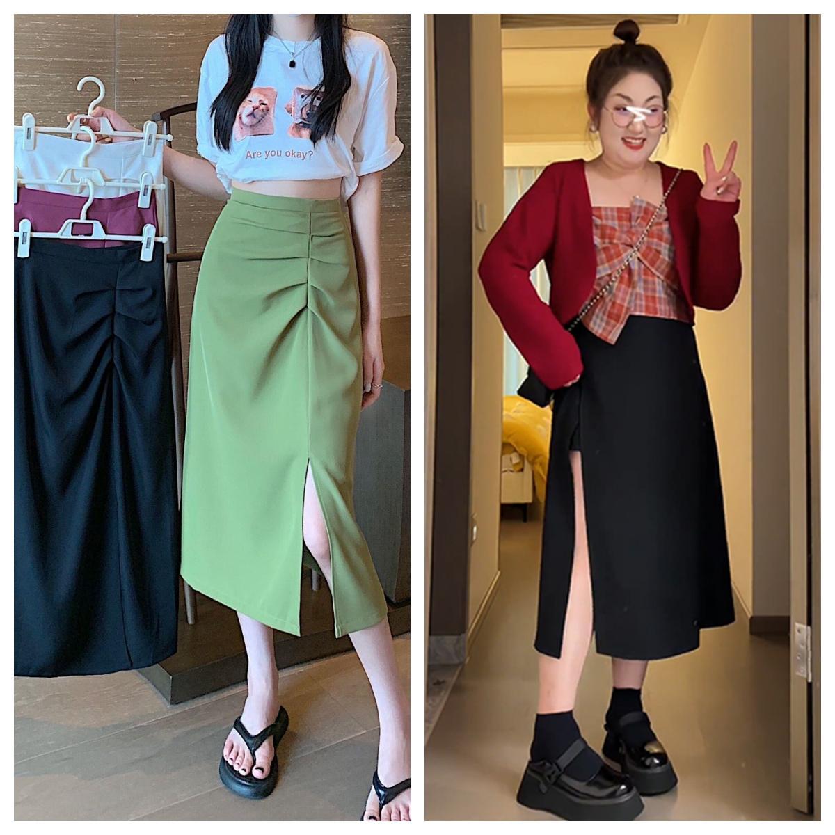 半身裙不規則的開叉設,在細節上勾勒出不一樣獨特個性,搭配的上衣選擇性很多,可以凹造型不會走光,適合腿短的女生,視覺上拉長了腿型。