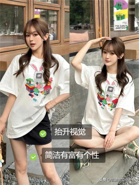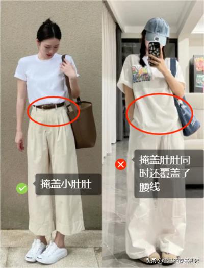 ②T恤的短款不遮臀部,不塞褲腰才顯利落