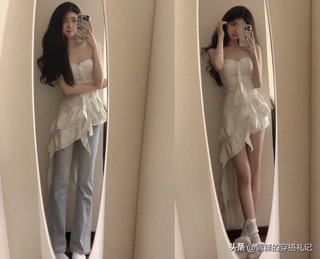 中規中矩的T恤款式,我們確實早已經穿膩了,如今比較流行的是那些有設計感的T恤,上衣,比如下襬的部分可以打造不對稱的剪切感,這樣就可以避免一刀切的單調效果,稍微短一點的設計,還可以露出你的腰線和你你的腰部皮膚,這樣去塑造時尚感纔是精緻耐看的。