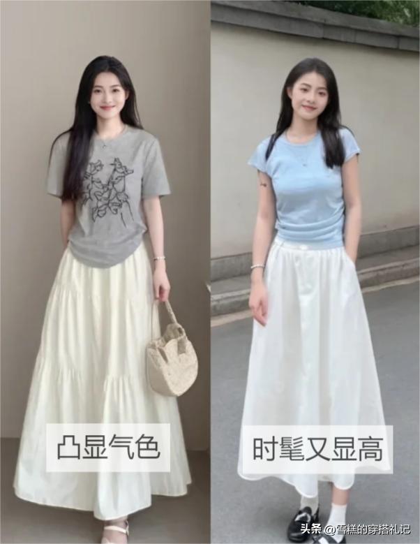 T恤上衣用來搭配百褶裙,真的是一套不同年齡段都可以駕馭的穿搭,JK款式的百褶裙組合白色T恤,學院風格和減齡風格拉滿了,如果是加長款式的雪紡百褶裙搭配印花款式的T恤,用來通勤和上班都是不錯的,同樣組合小白鞋,穿出來的風格完全不一樣。