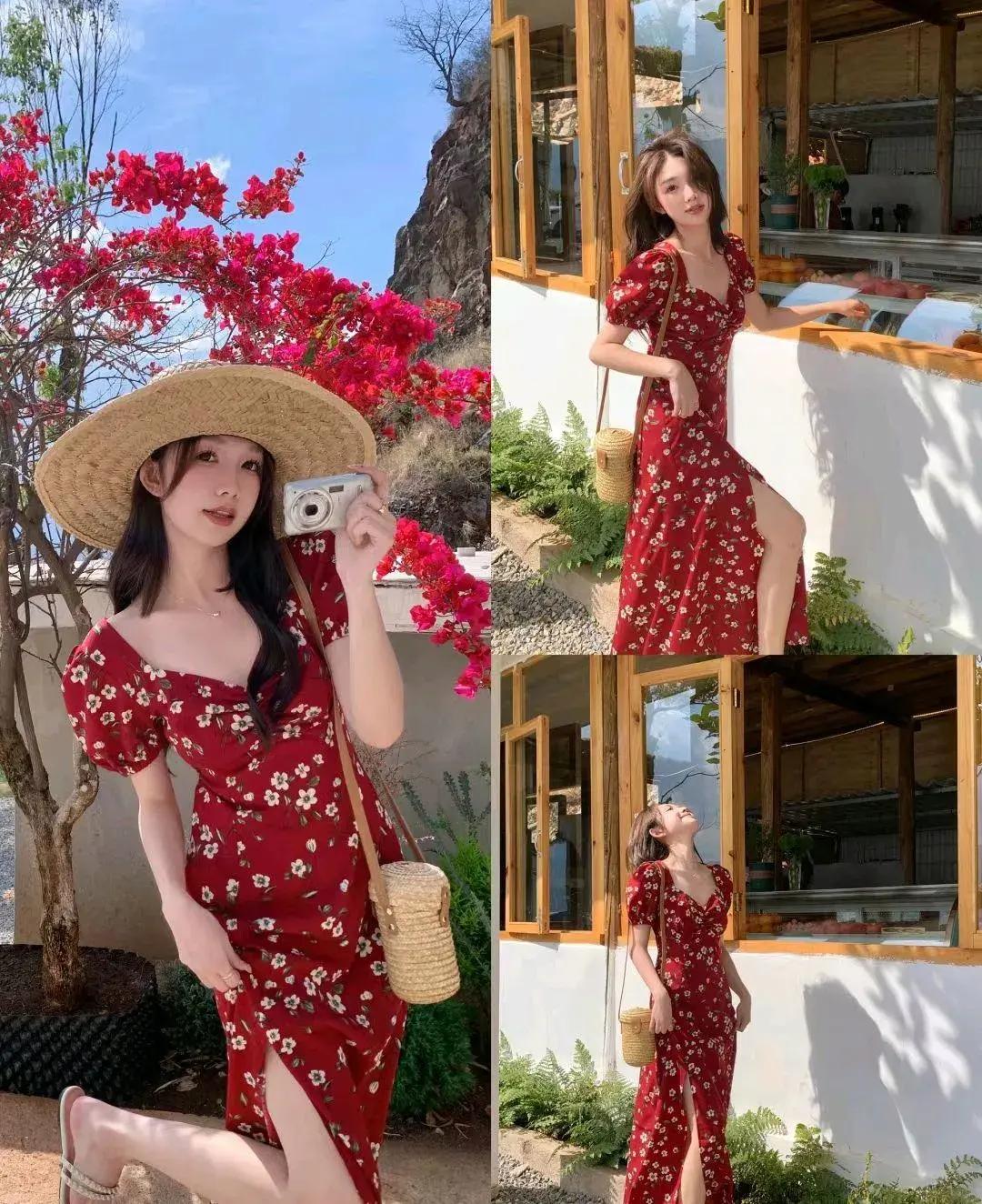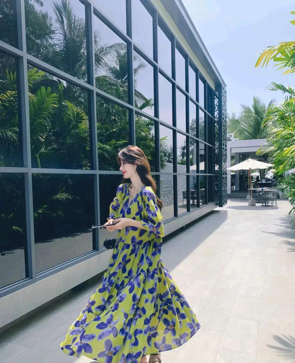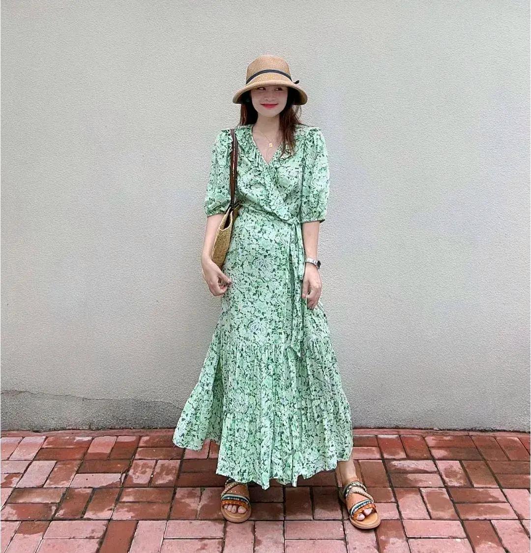 可甜可辣的度假風穿搭,這麼一條裙子,太適合夏天穿了。深v 領口+開叉裙襬,這些都是茶歇裙最大的優勢。