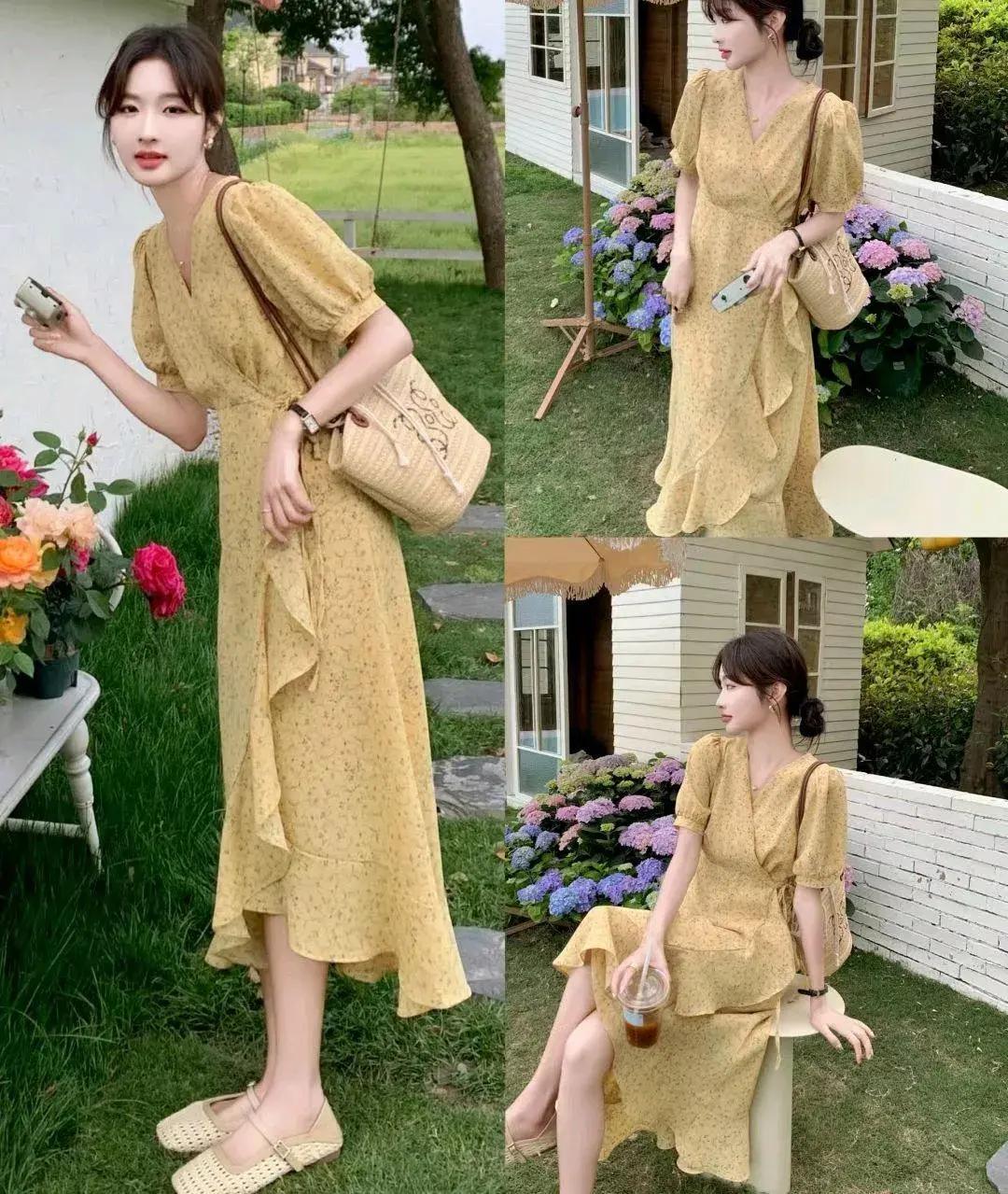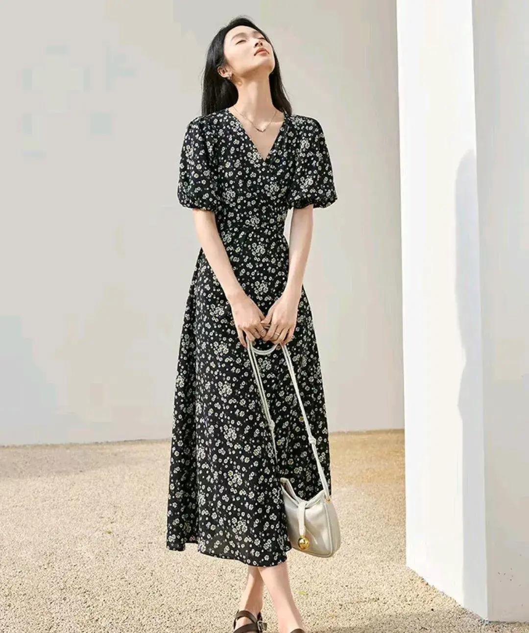 夏天到了,誰不想穿裙裙呢?這麼一條自帶浪漫氣息的法式茶歇裙,任誰看了不心動呢?收腰+深v 領的設計,穿起來太瘦身了,雪紡材質的裙子,很輕盈又舒適,悶熱的季節也可以穿。