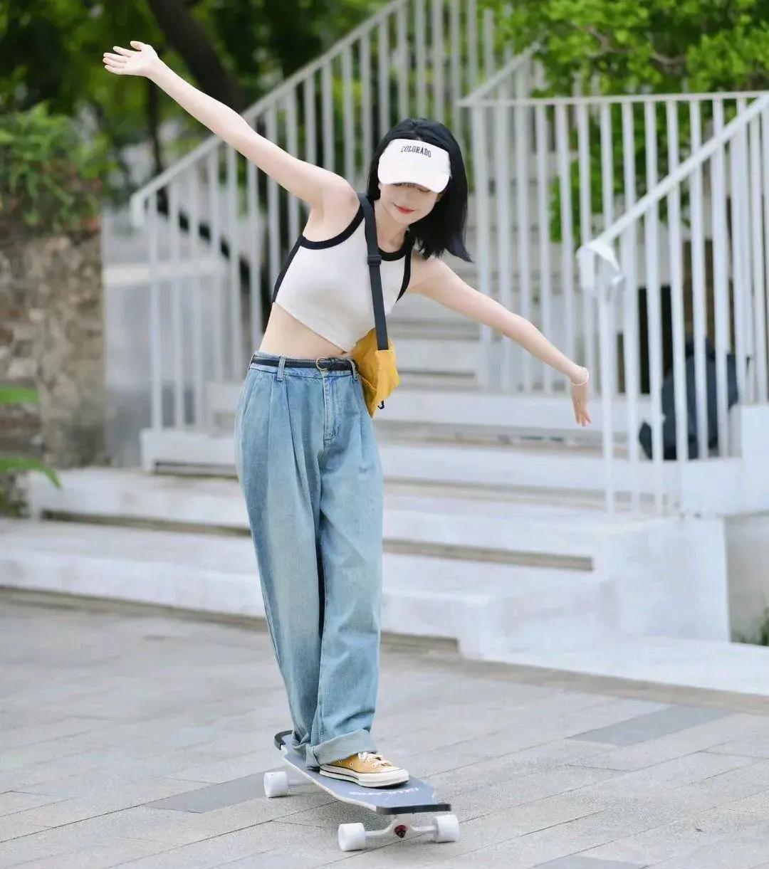 小背心配牛仔褲,這種甜酷風十足的運動風穿搭,任誰看了都會很喜歡吧?當然了,上身比例好的姐妹,就可以肆意點,若是你對自己的身材沒有信心的話,那麼就外搭一件防曬衫吧,既可以防曬又時髦。