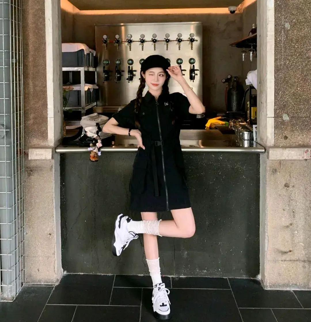 少女風十足的一款工裝穿搭,既不失休閒運動氣息,又帶點甜酷範。休閒又充滿韓系的組合,黑色和白色的經典配色,真的超級耐看的,一點都不會過時,可鹽可甜的。