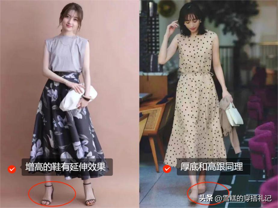 ☆裙襬過膝或者過腳踝,搭配粗跟鞋很顯身高