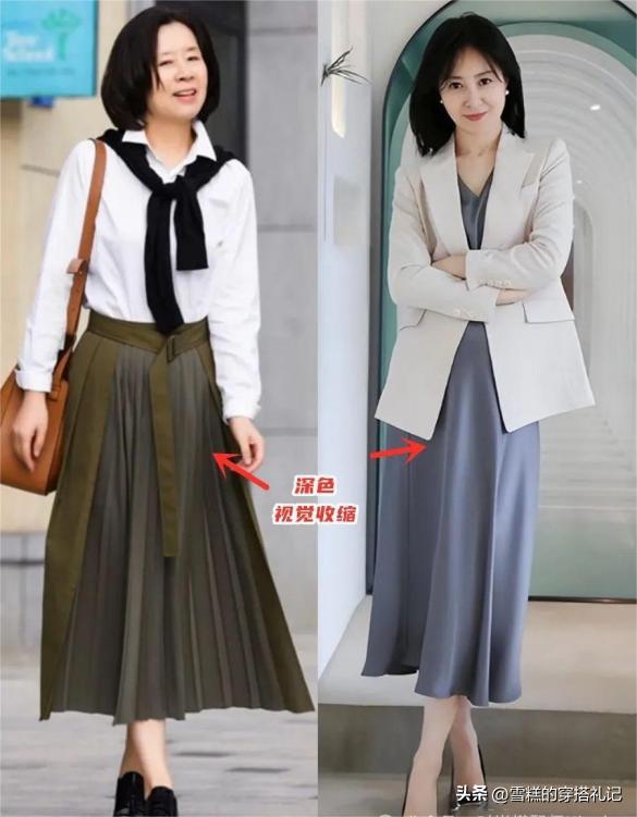 上衣和裙子本來就是兩件單品,那麼差異色彩的對比效果,可以最大程度的減少視覺的單調感,輕鬆能夠上檔次的穿法,可以嘗試上淺下深的配色原理,特別容易就能夠提升你的個人氣質。