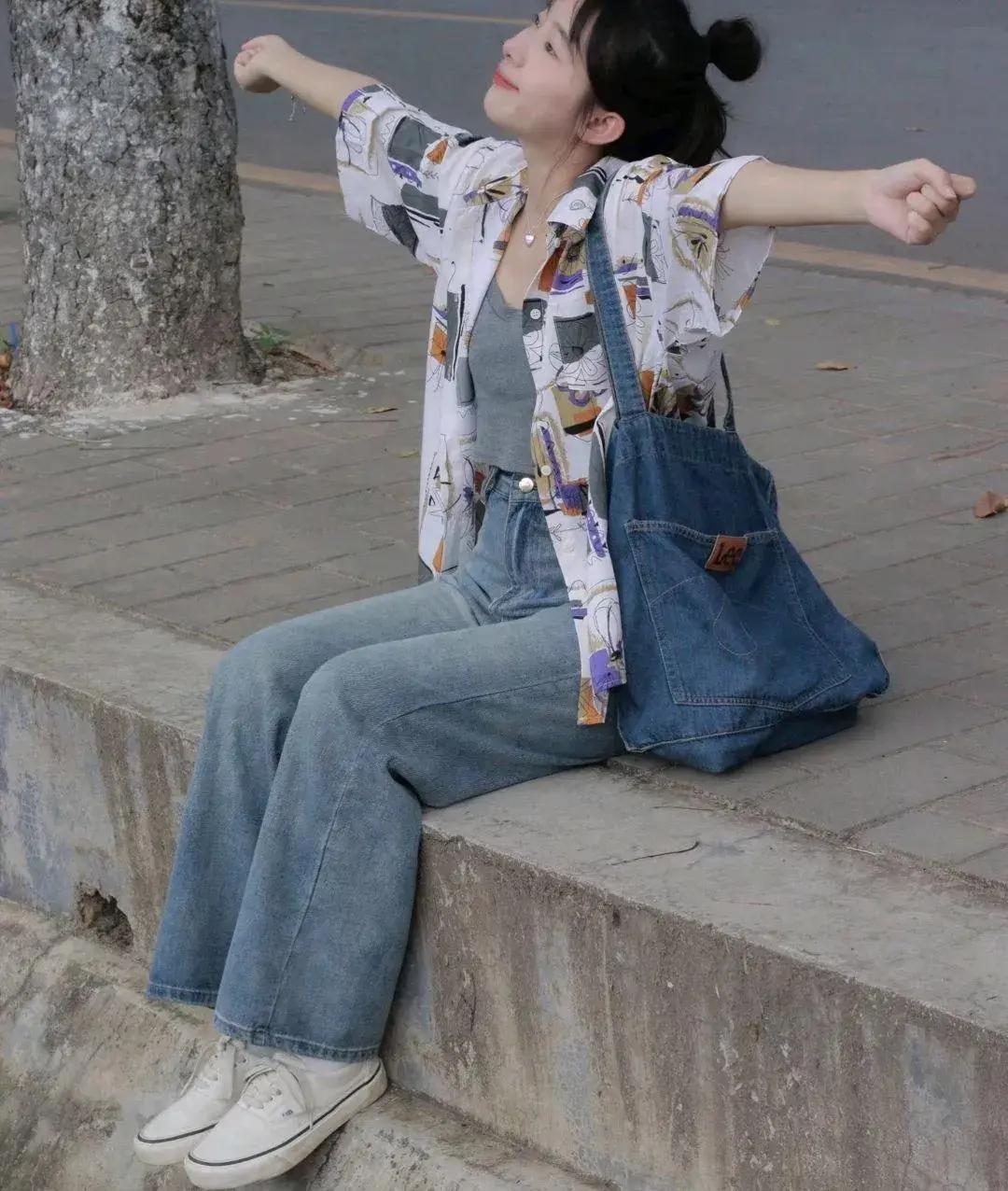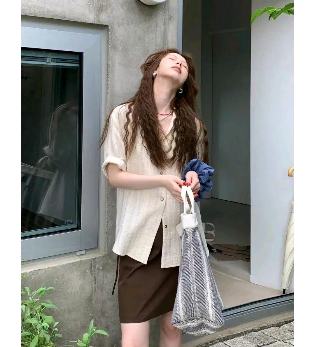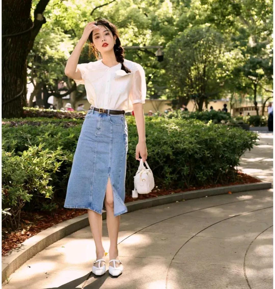 襯衫的材質柔軟又舒適,穿起來可太舒服了,下身搭配一條復古牛仔半身裙,簡單幹淨又清新,很適合夏日出行的一套穿搭。