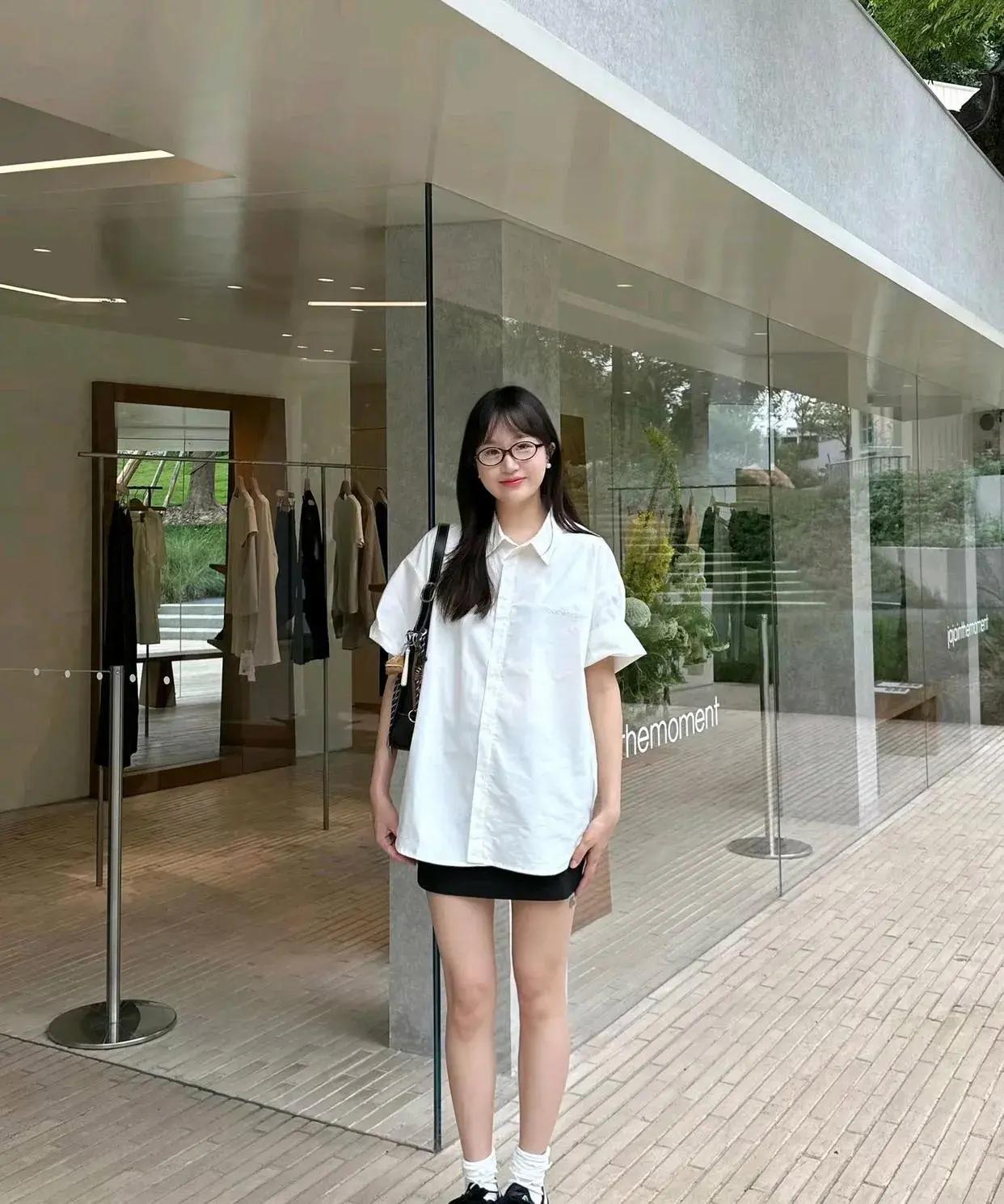 有些韓裏韓氣的短袖襯衫,喜歡它這種寬鬆的版型,實在是太藏肉顯瘦了,最重要的是可以讓你穿得很舒服。