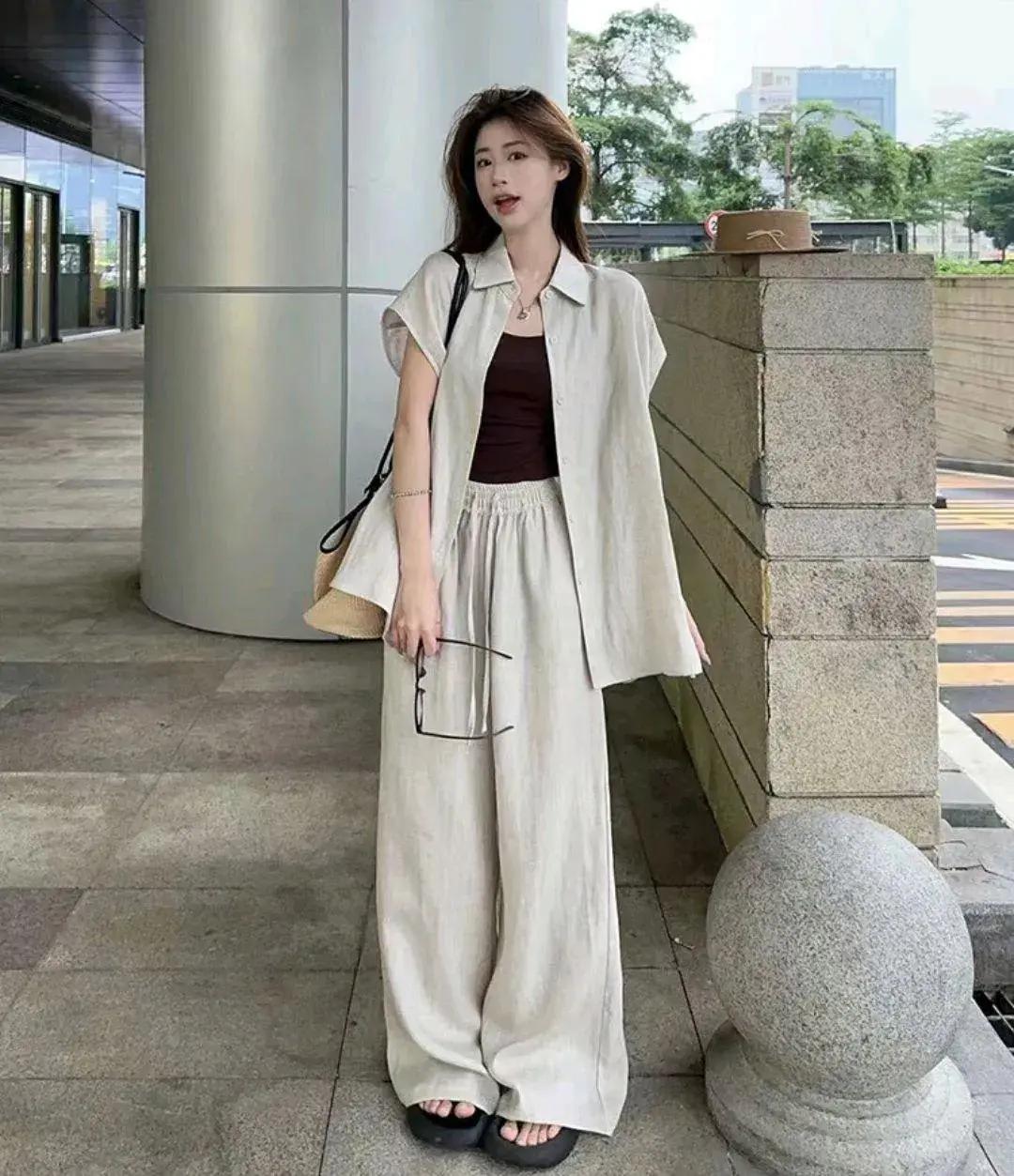 亞麻老錢風穿搭,你可喜歡呢?還有些偏韓裏韓氣的,翻領短袖休閒襯衫+抽繩休閒闊腿褲,鬆弛又不失慵懶的範,不管是什麼身材都適合穿,顯瘦又舒適。