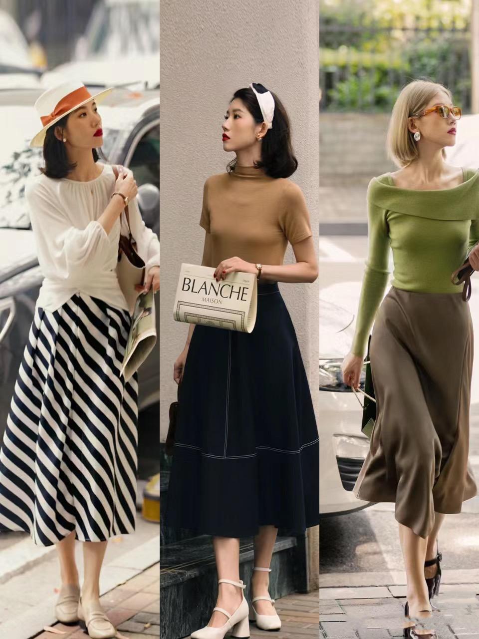 一件稍微個性洋氣的白襯衫,配上高腰色傘裙,大方體面。