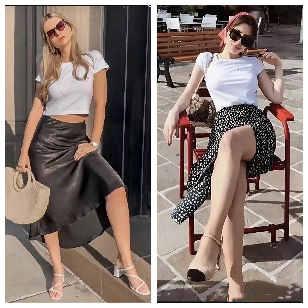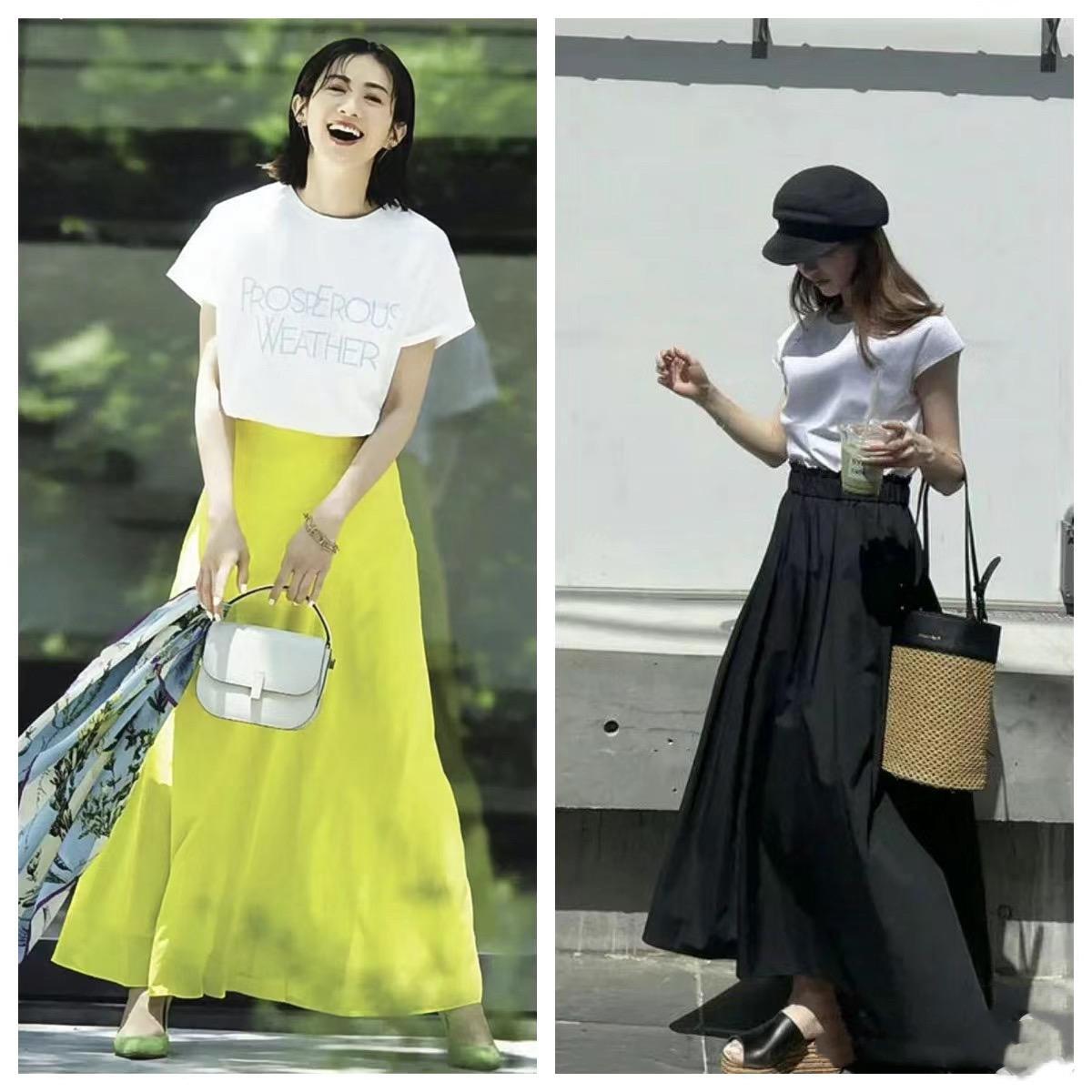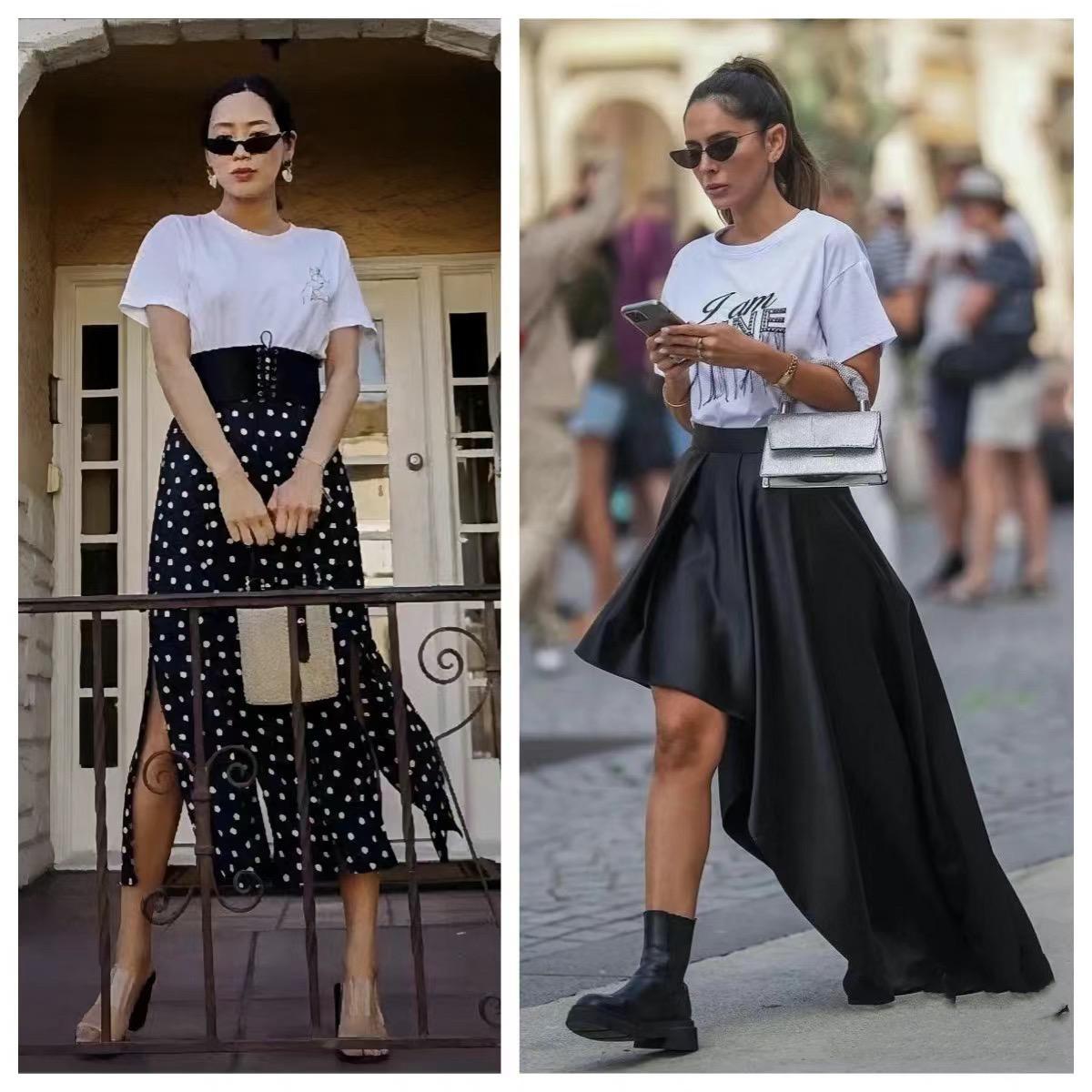 白T+醋酸半身裙,輕鬆拿捏女性柔情。