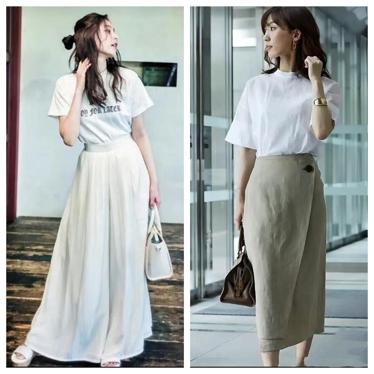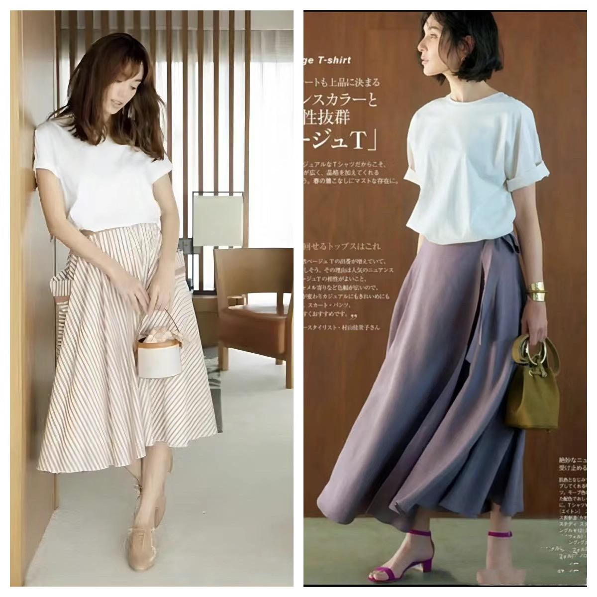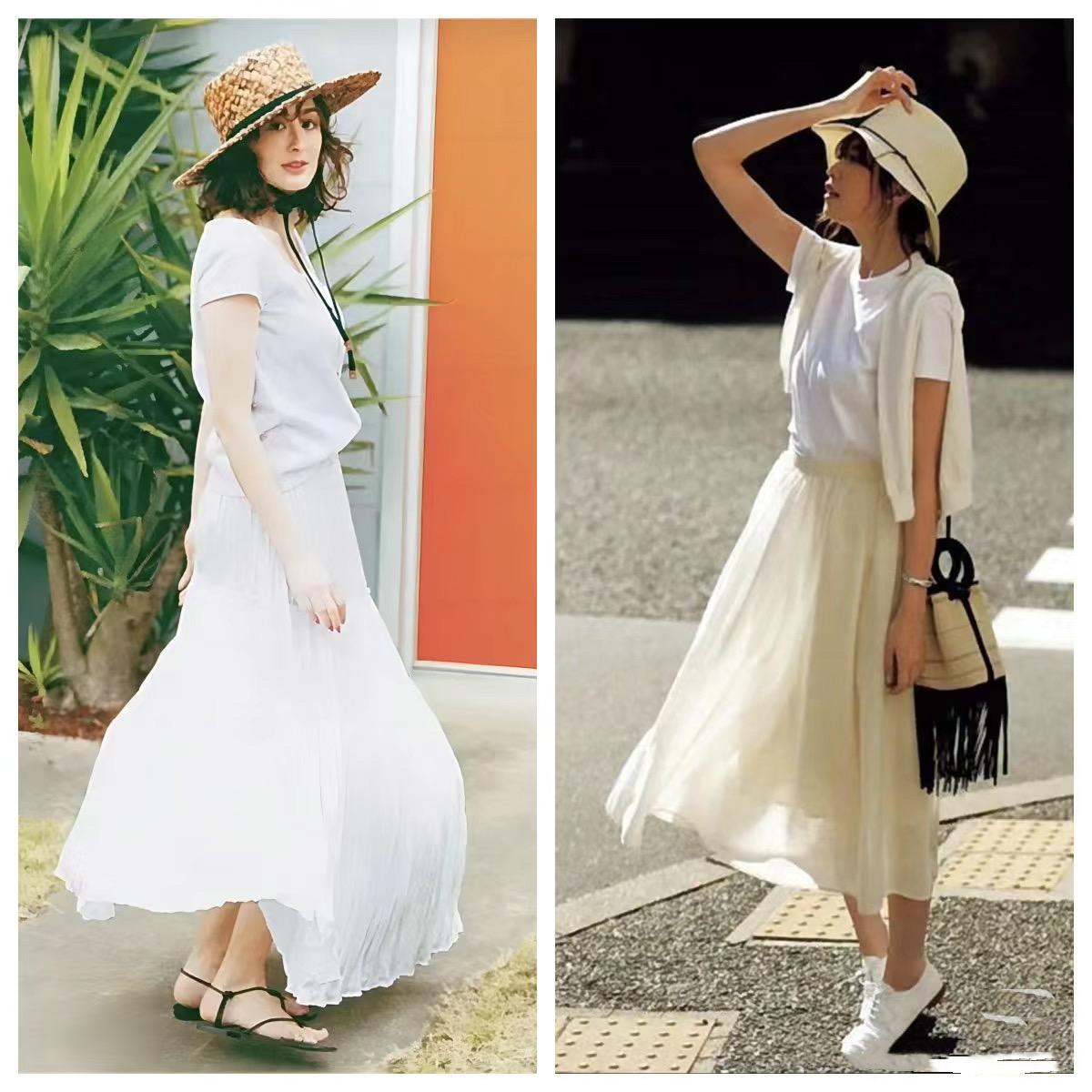 白T+醋酸半身裙,輕鬆拿捏女性柔情。
